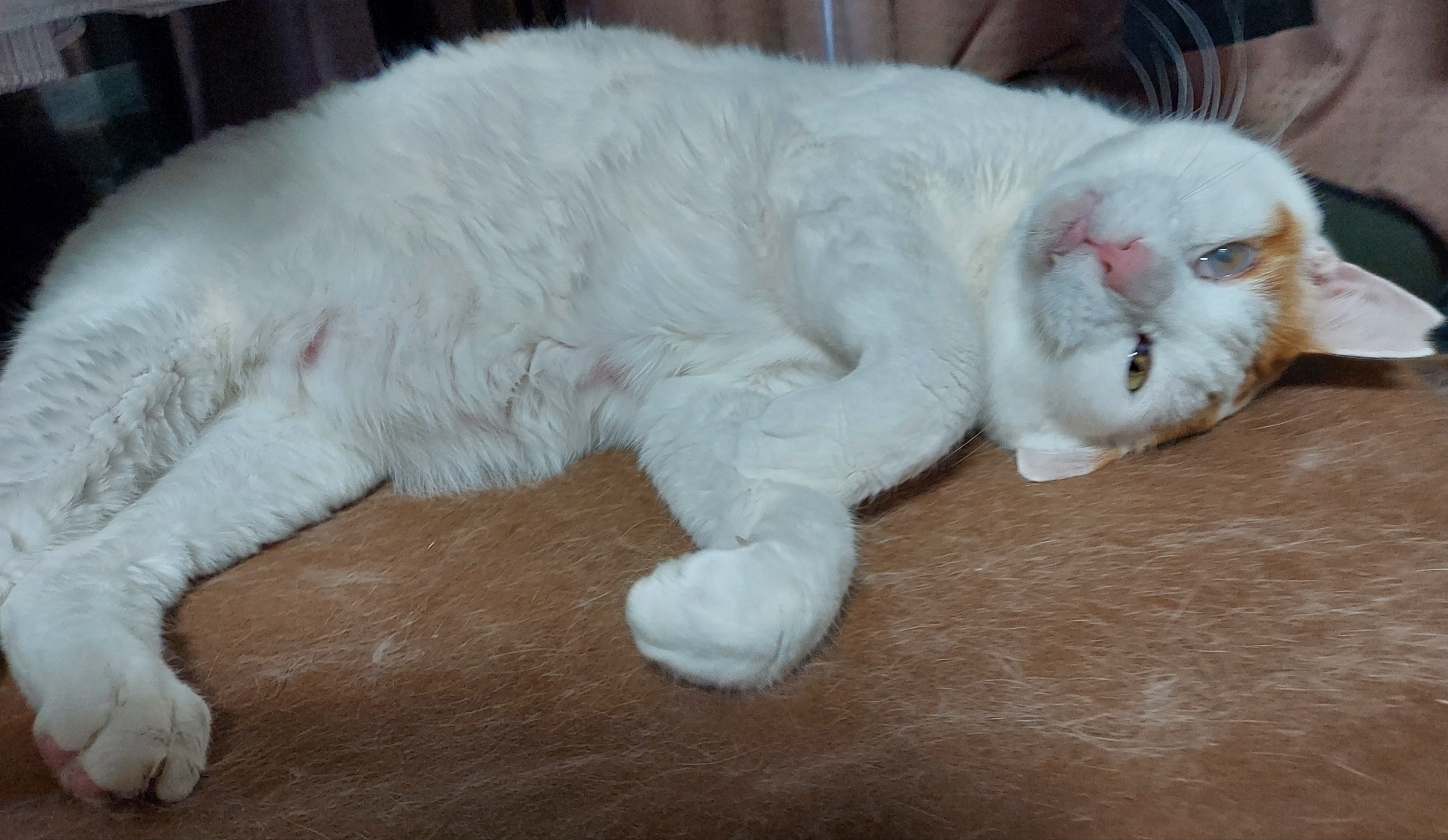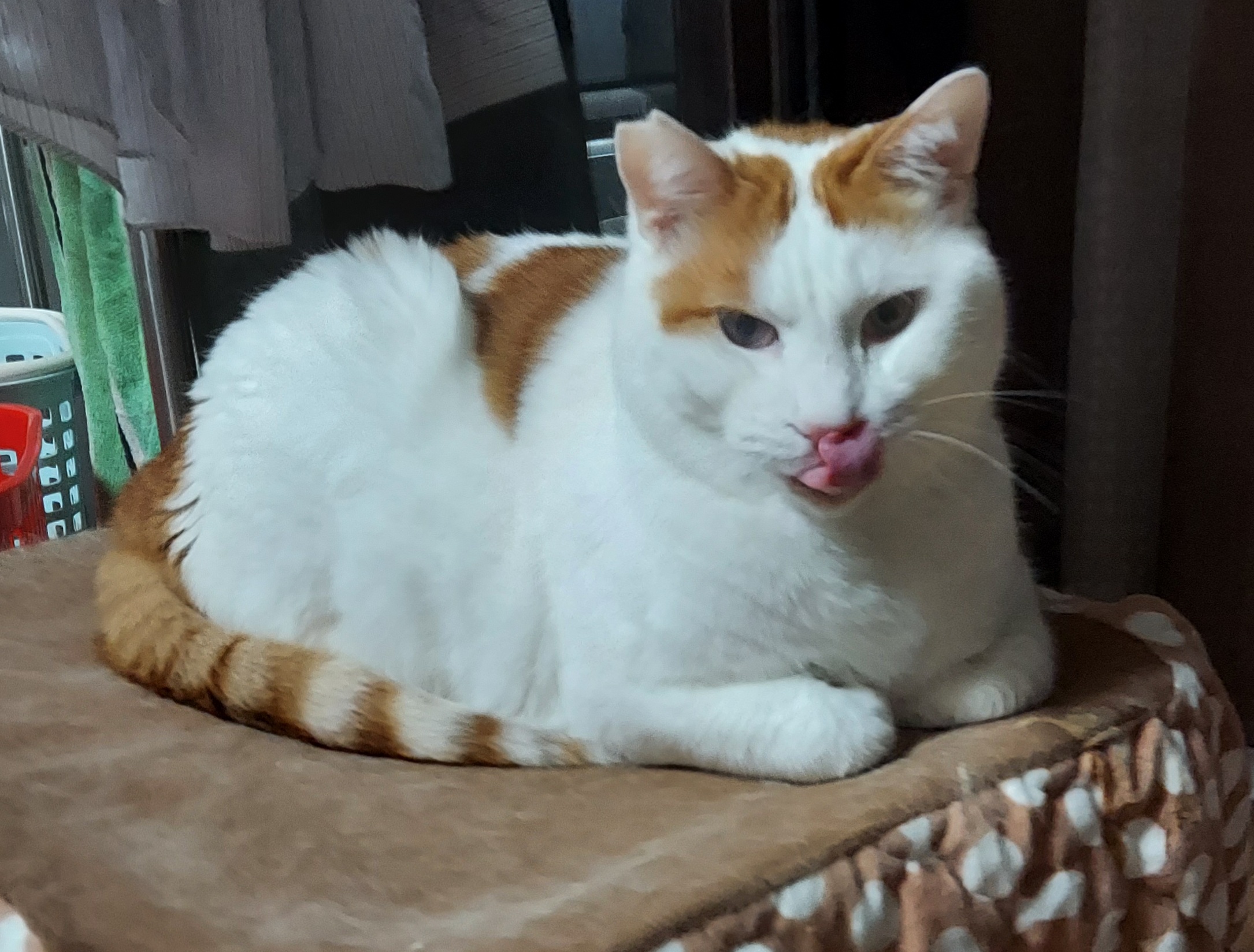 ふうすけです。強い猫に襲われて満身創痍でベランダのフェンスを乗り越えて逃げ込んできて以来うちの子になりました。