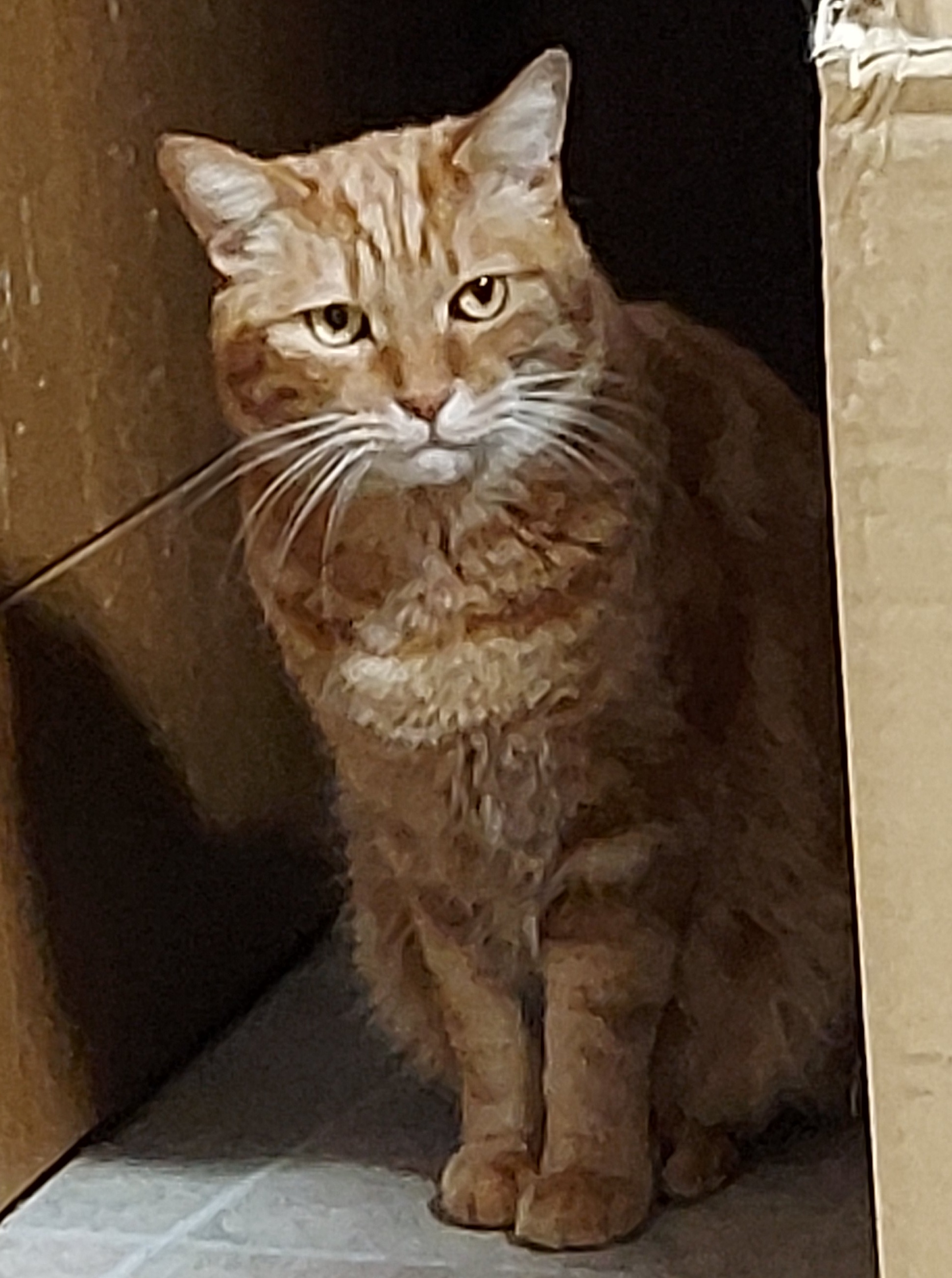 やせていてひどい風邪でしたが、今では大きな猫に成長しました。