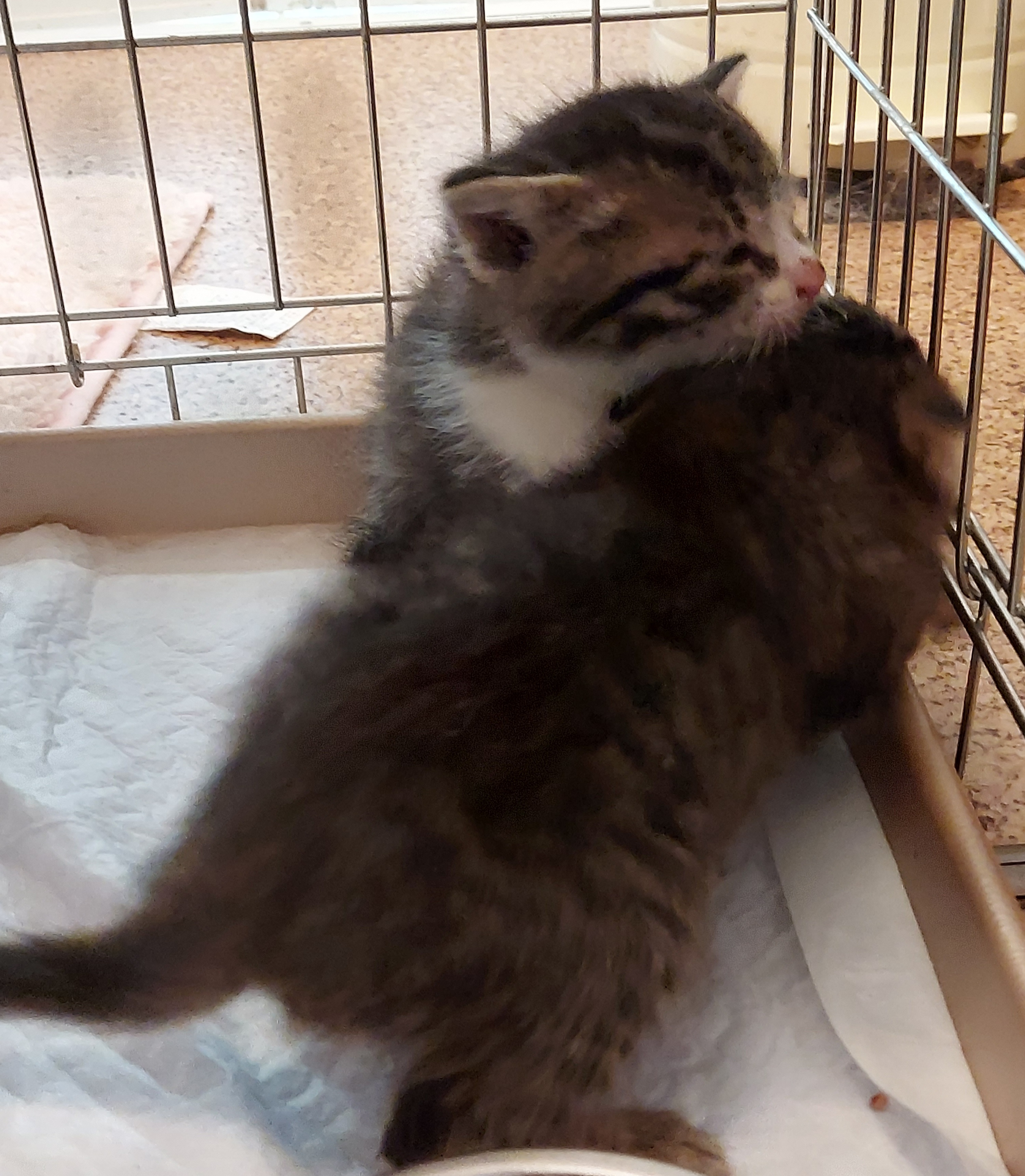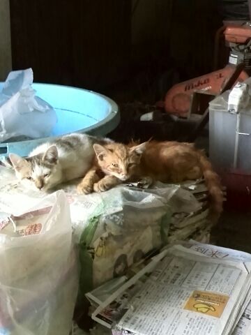 ヨチヨチ子猫が2匹、交通量の多い場所でえさやり?のおばあさんが連れて来たそうです。