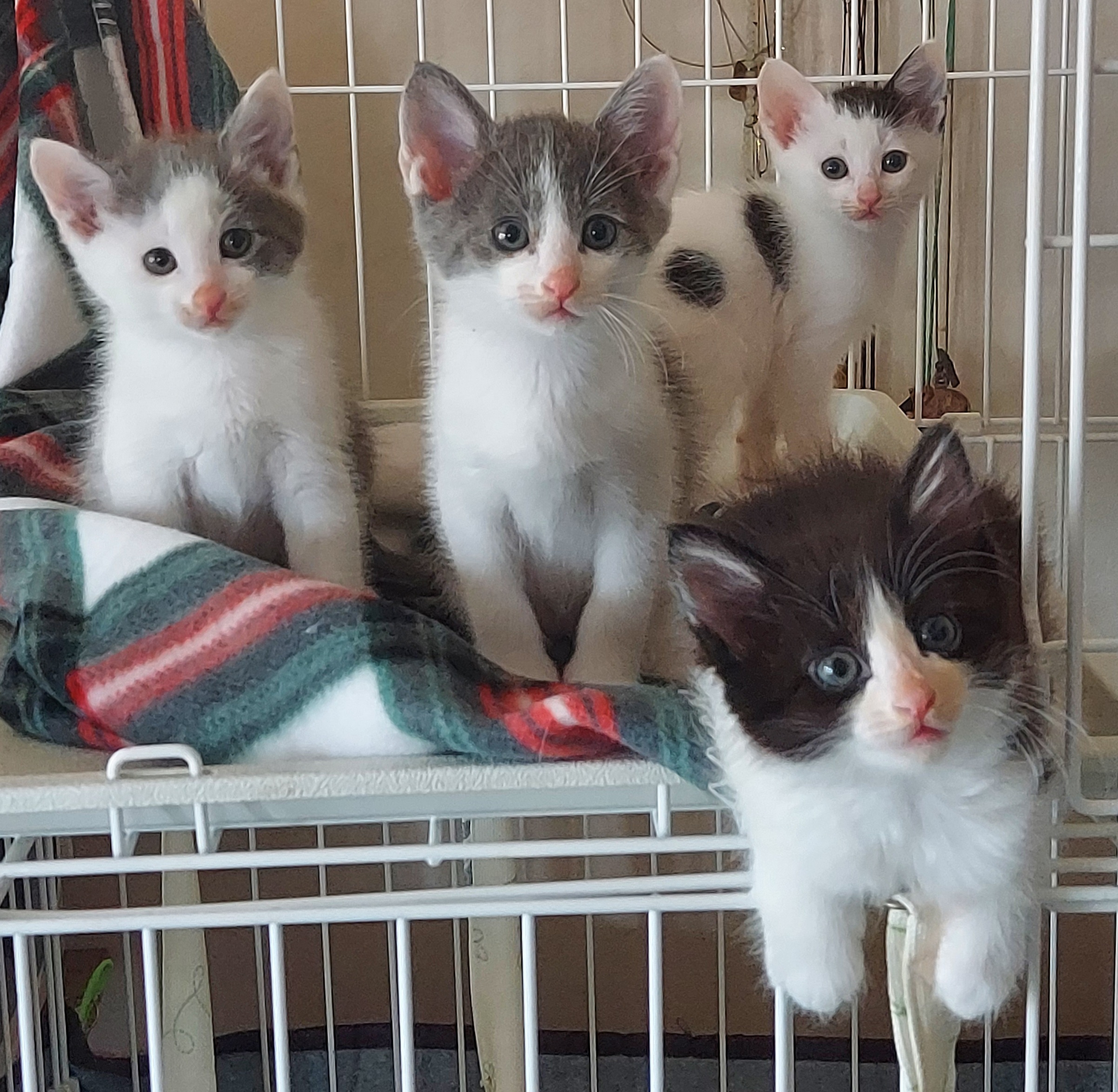 保護猫部屋となりのリビングのゲージに4にゃん入れました。