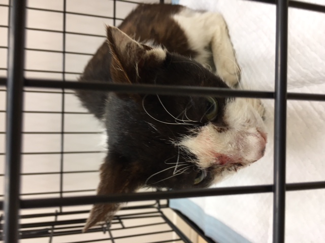 まだ若い子だそうです。顔が腫れて猫風邪でかかりつけの病院にとりあえず入院させたそうです。