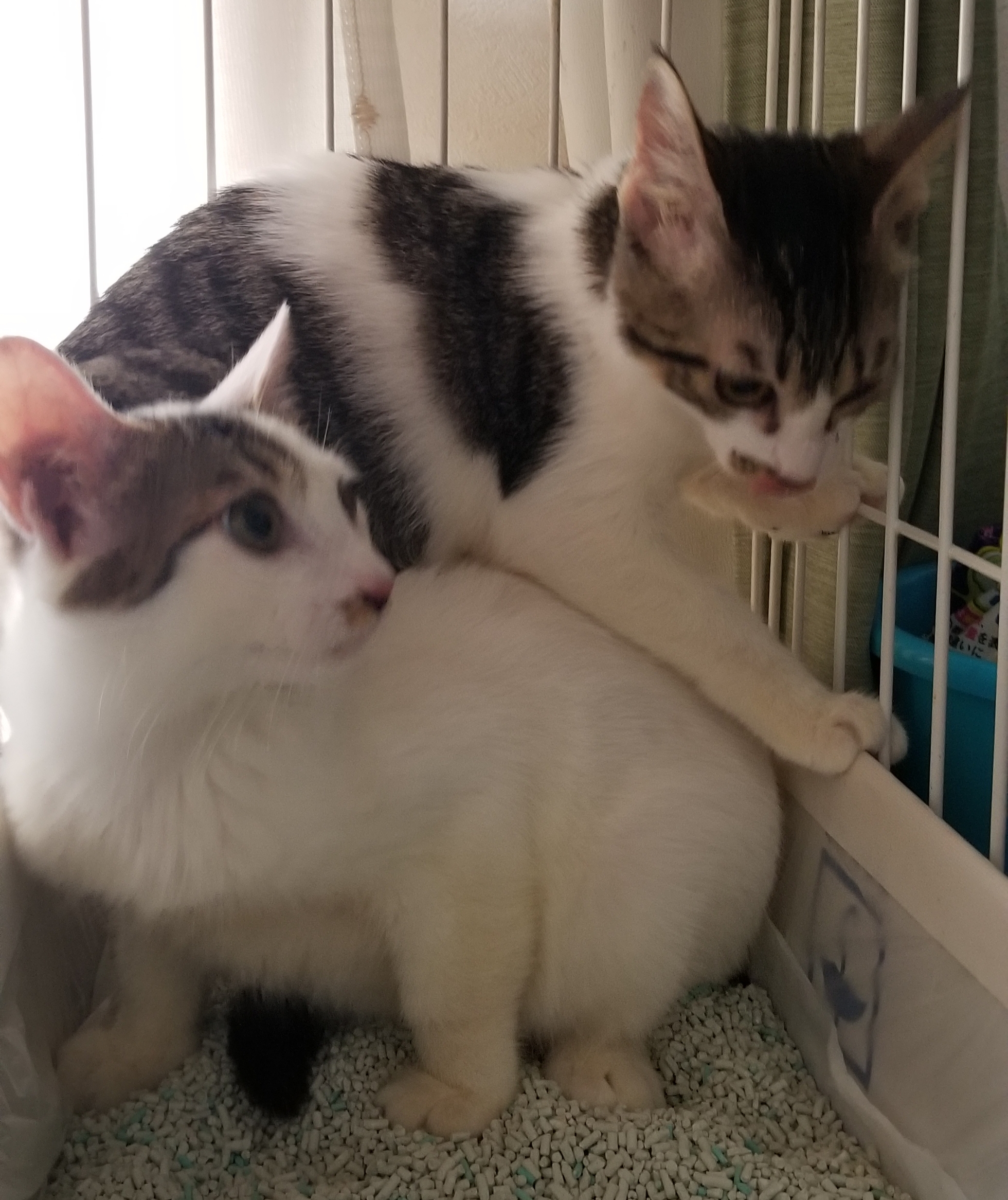 人馴れのために別々のゲージで過ごしていましたが、隣同士でちょっかい出しあっていました。