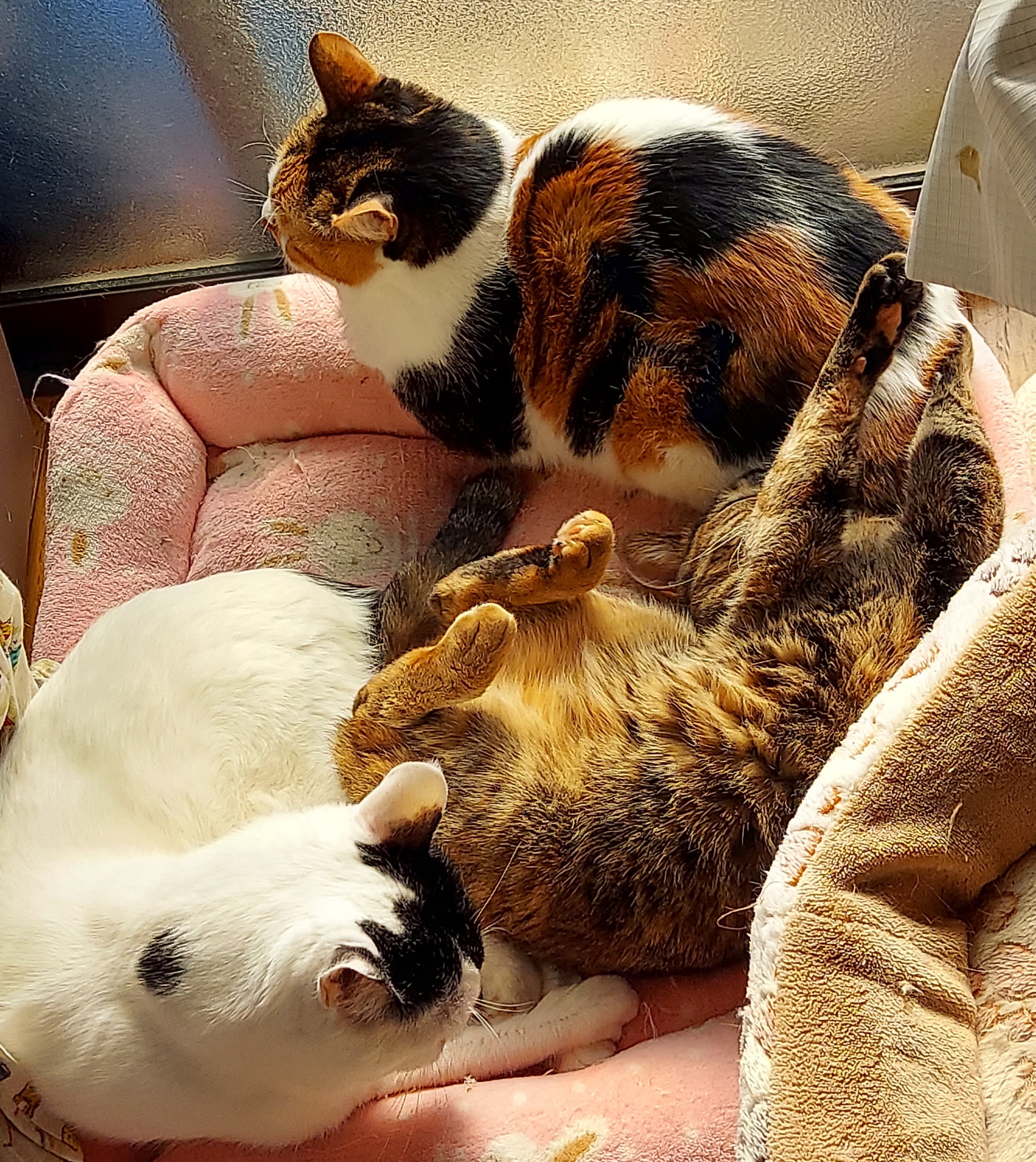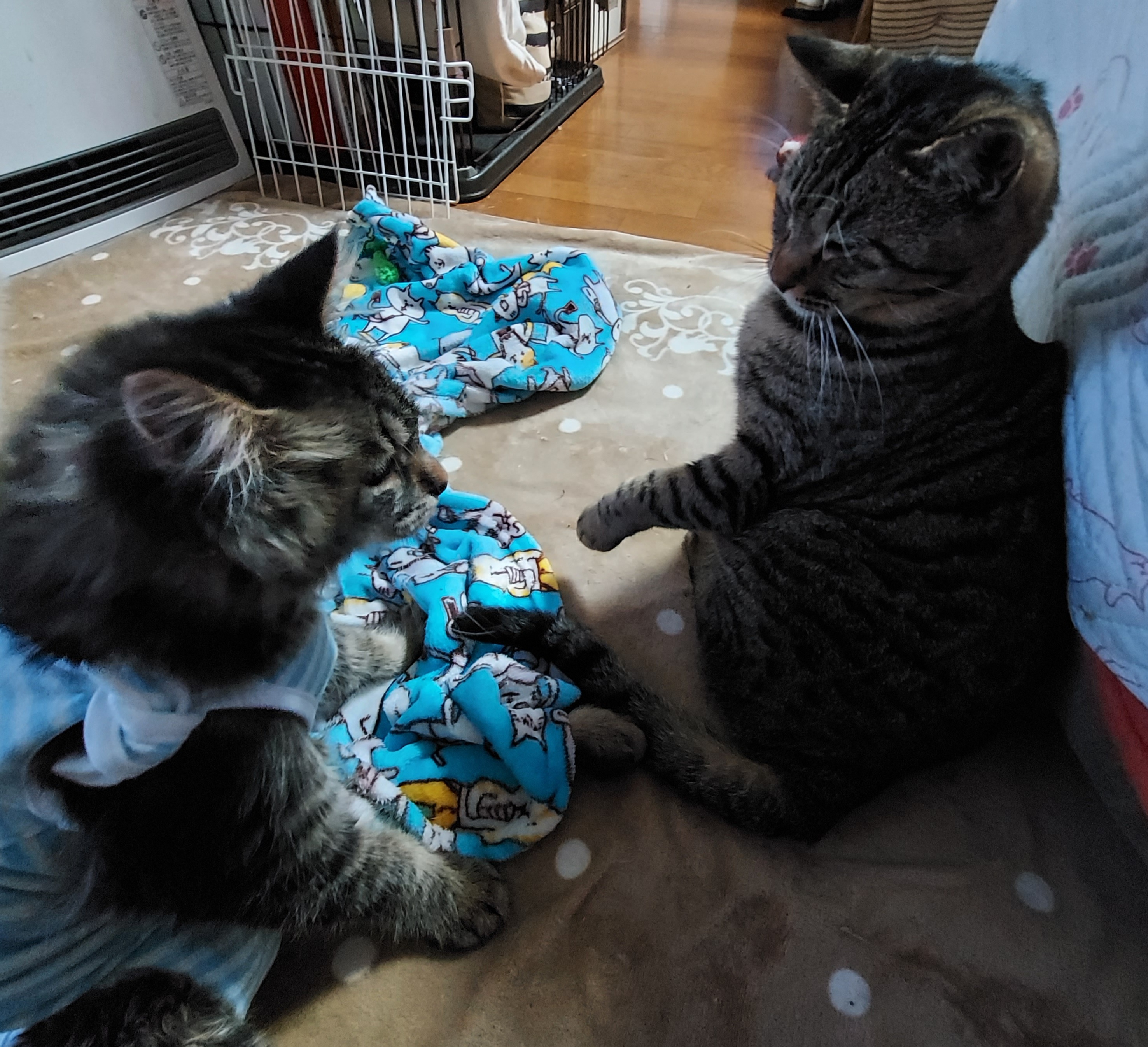 あったかいにゃ! とくつろぐ小菊、この子は本当に誰とでも仲良く屈託なく接しられる子です。