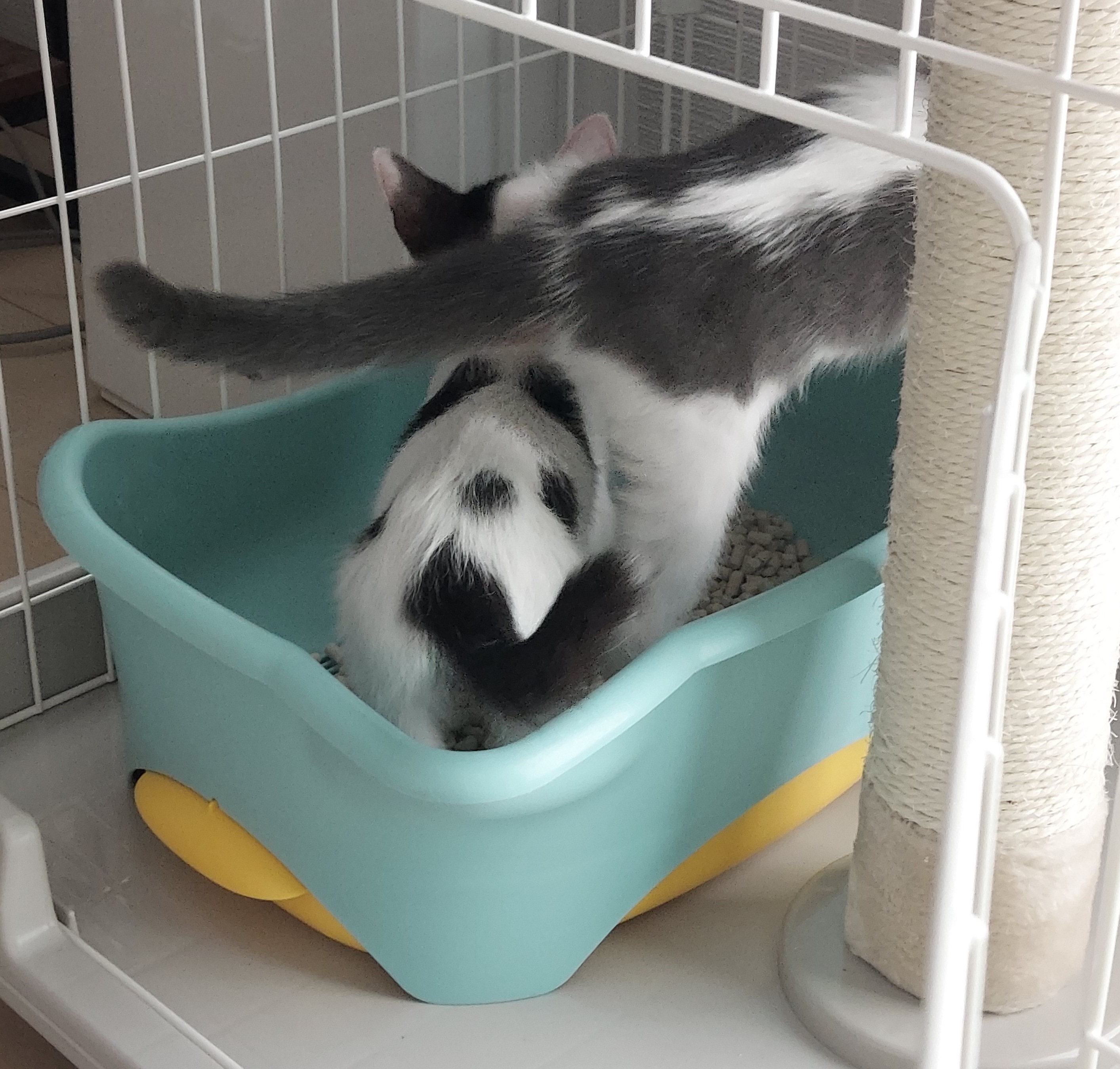 新しいトイレやゲージ、環境に最初は戸惑っていたようですが、すっかりなついてきたようです。