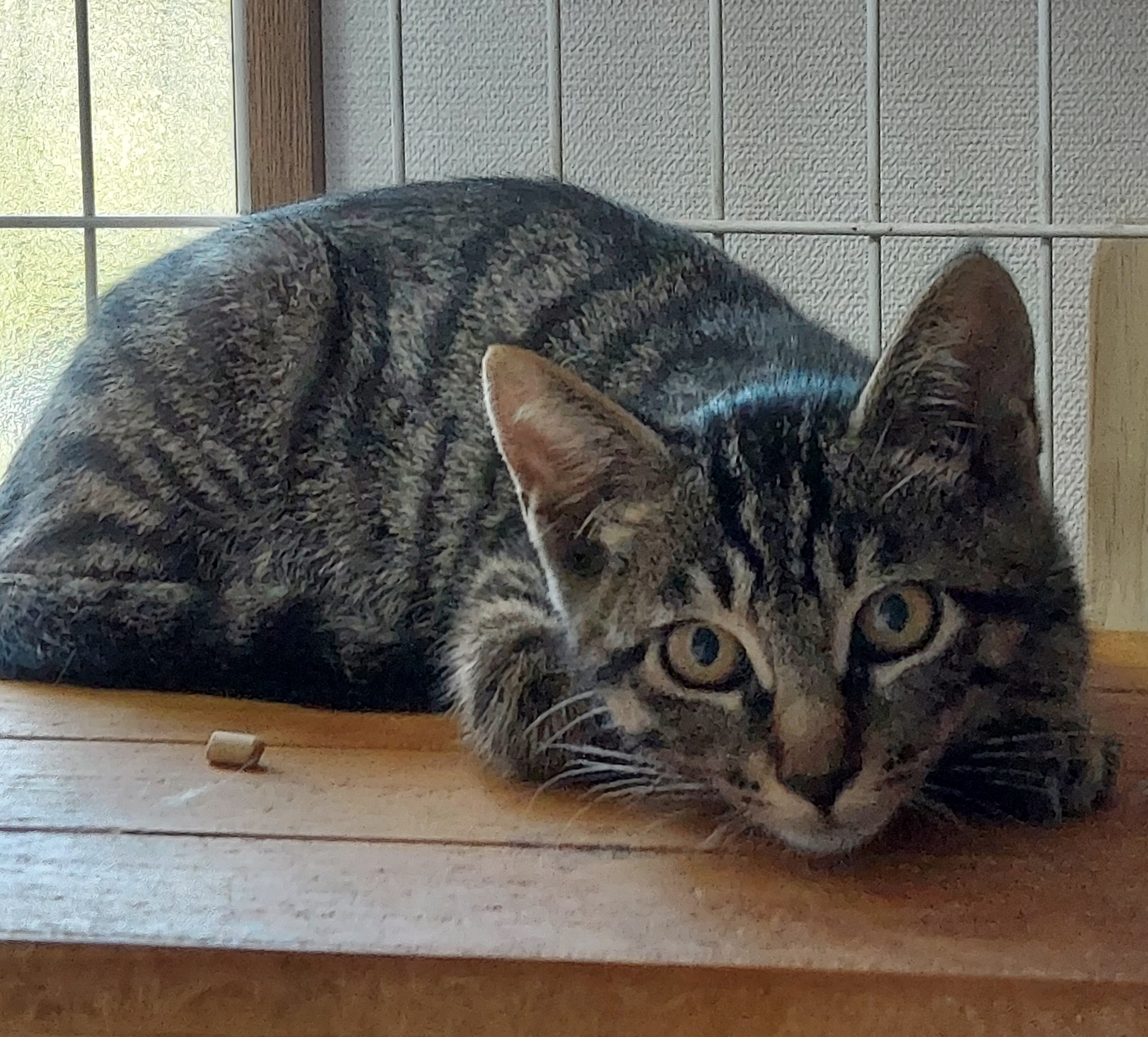 ママ猫のデイジーはエイズ陽性です。年齢不詳です。
