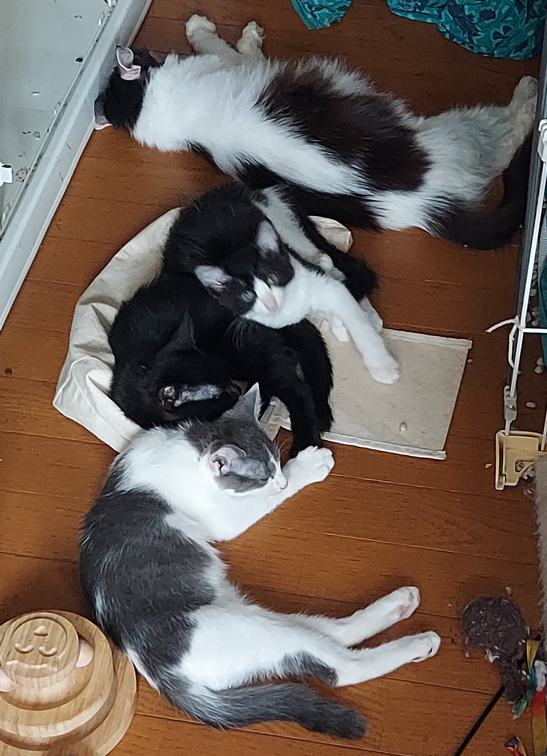 まるくん、ちょっと子猫たちに拒絶反応を出しているそうですが、リビングにも居られるようになったそうです。