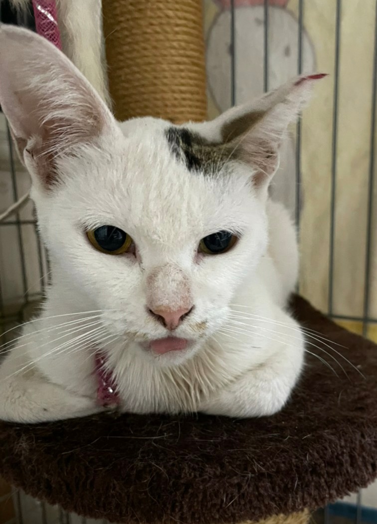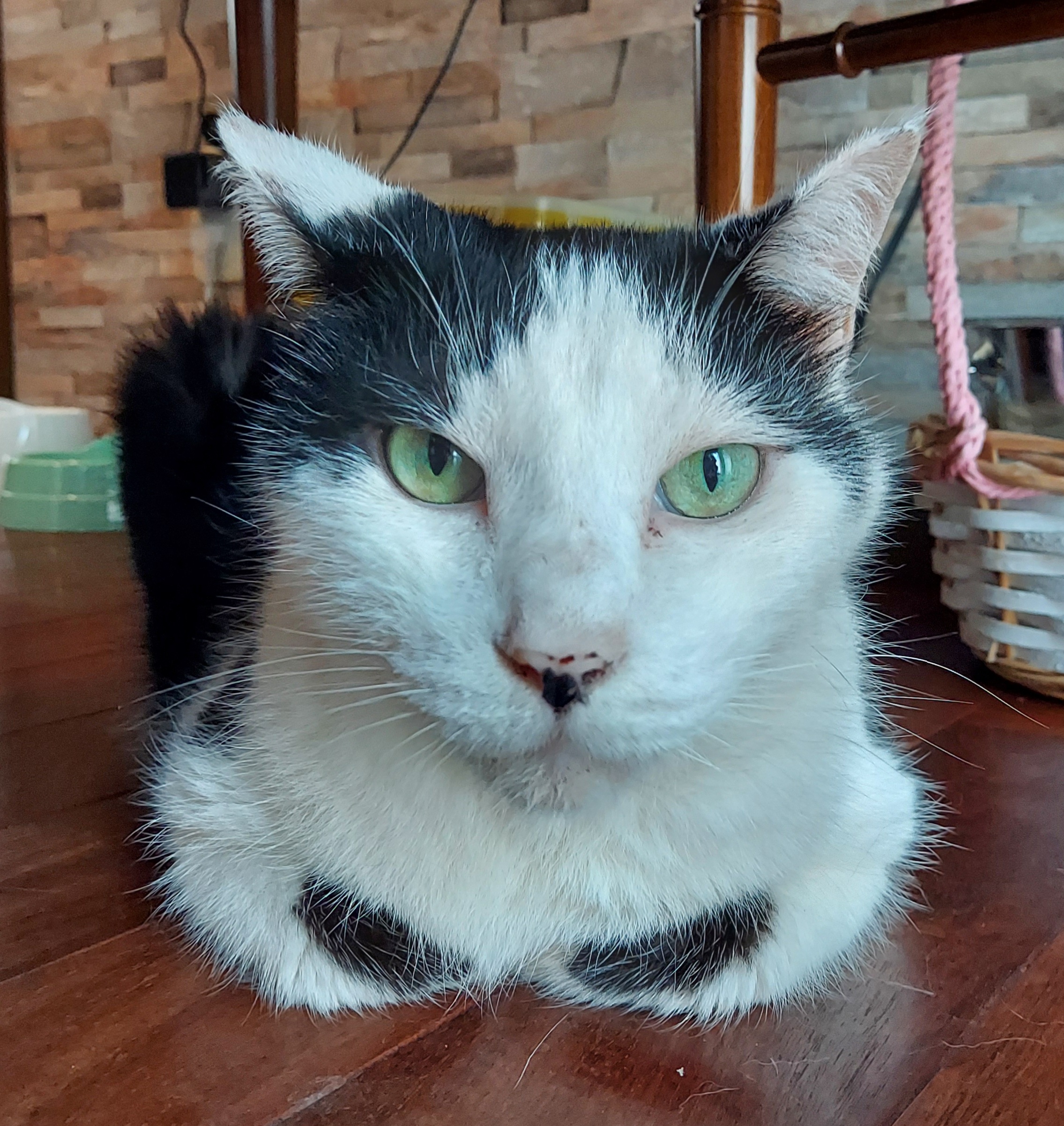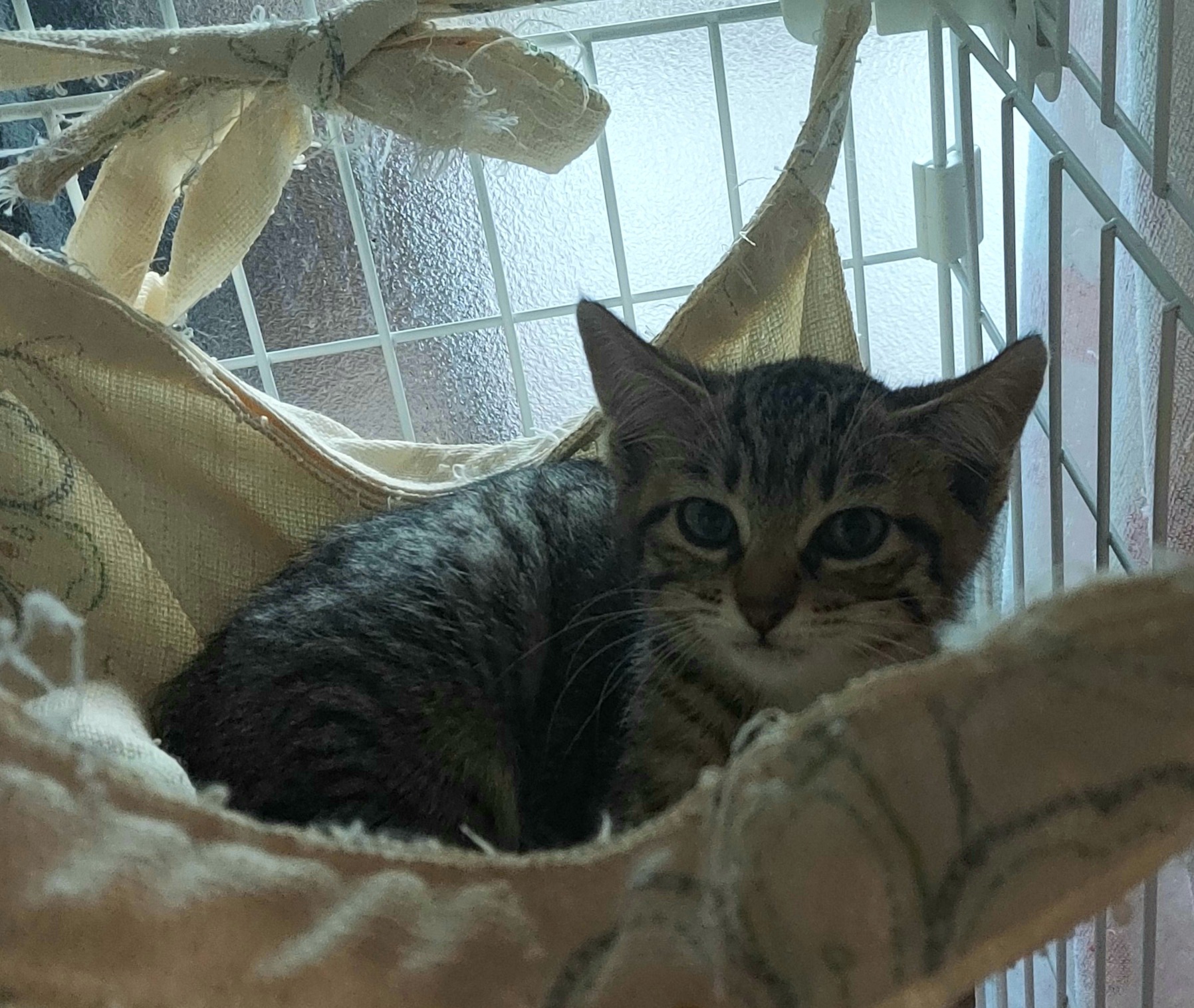 ママ猫のデイジーはエイズ陽性です。年齢不詳です。
