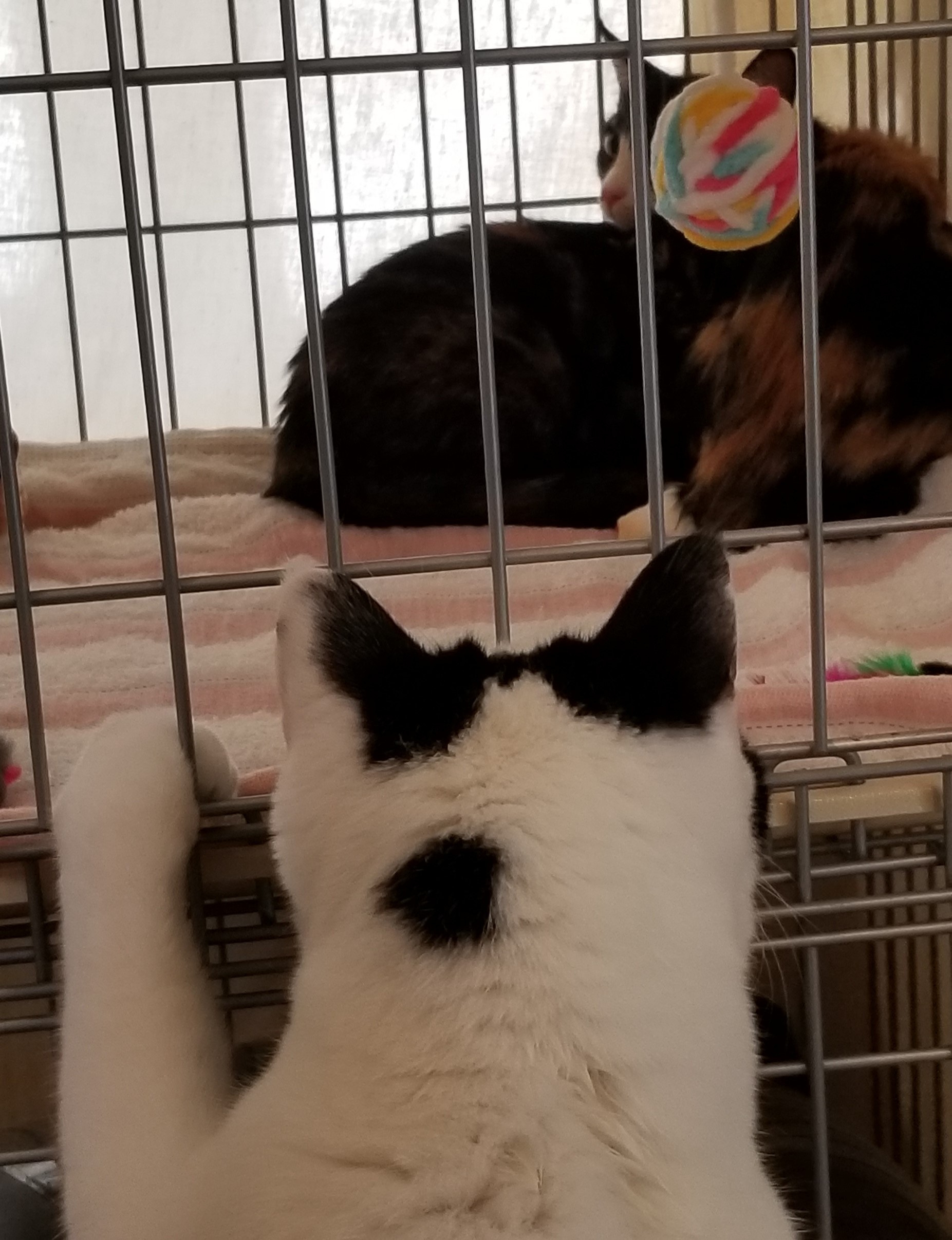 先週お見合いをして本日トライアルに出発したサビちゃん、三毛ちゃん。