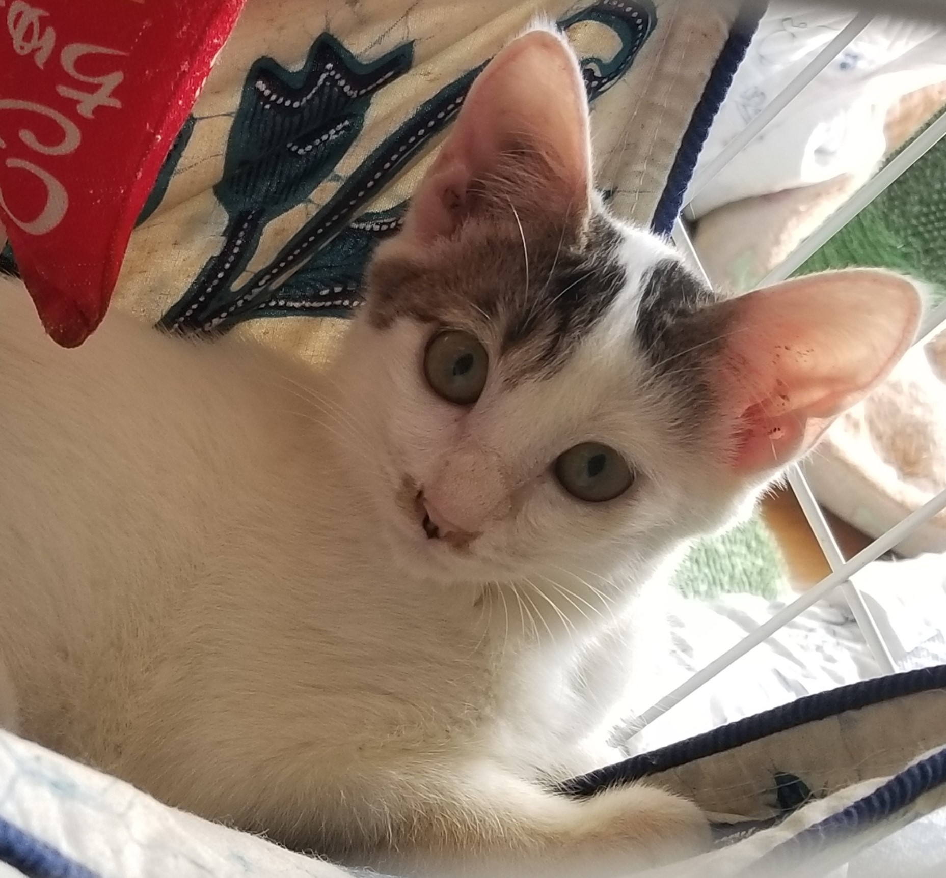 警戒心が強くてまだ触れない美々ちゃん。