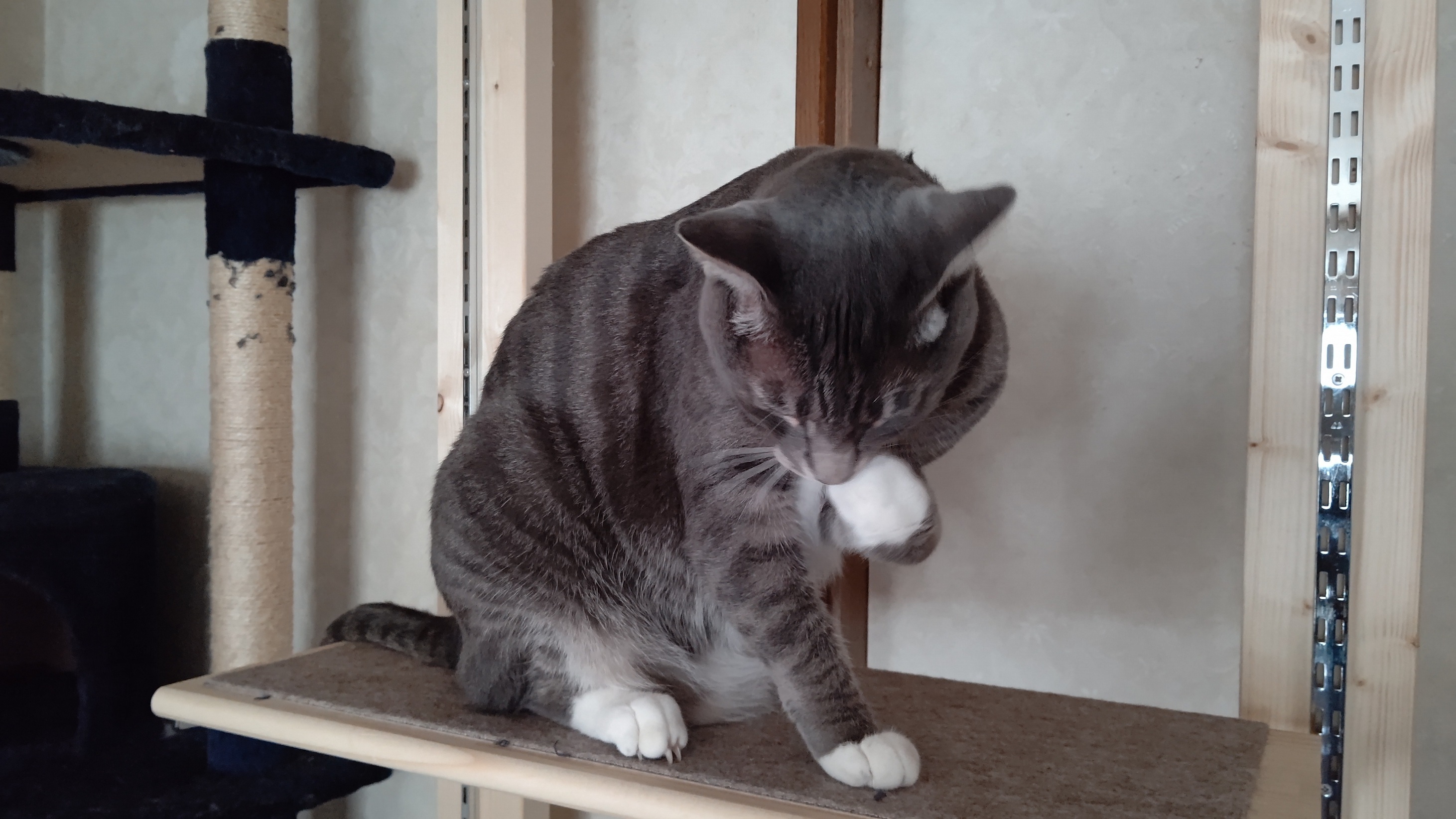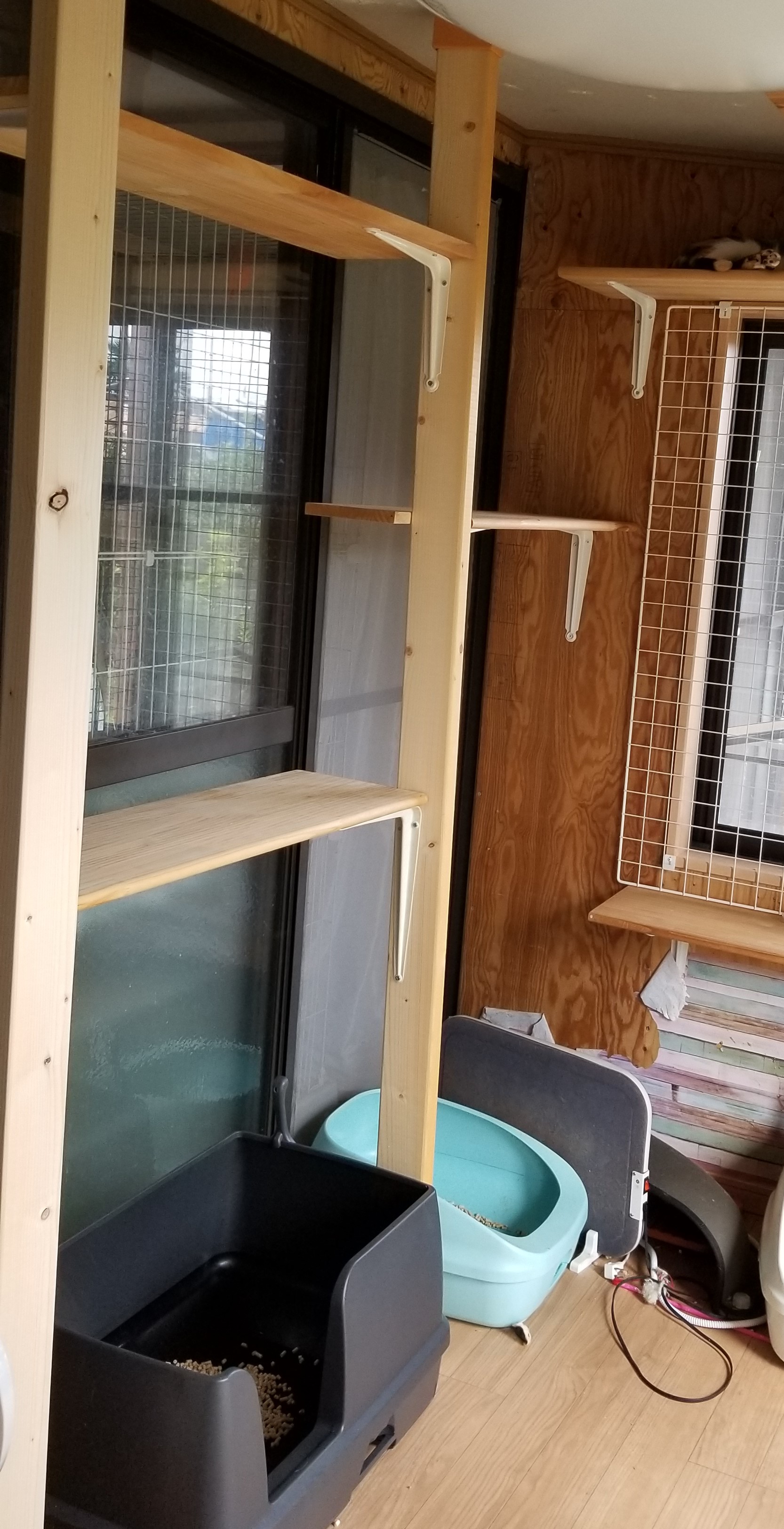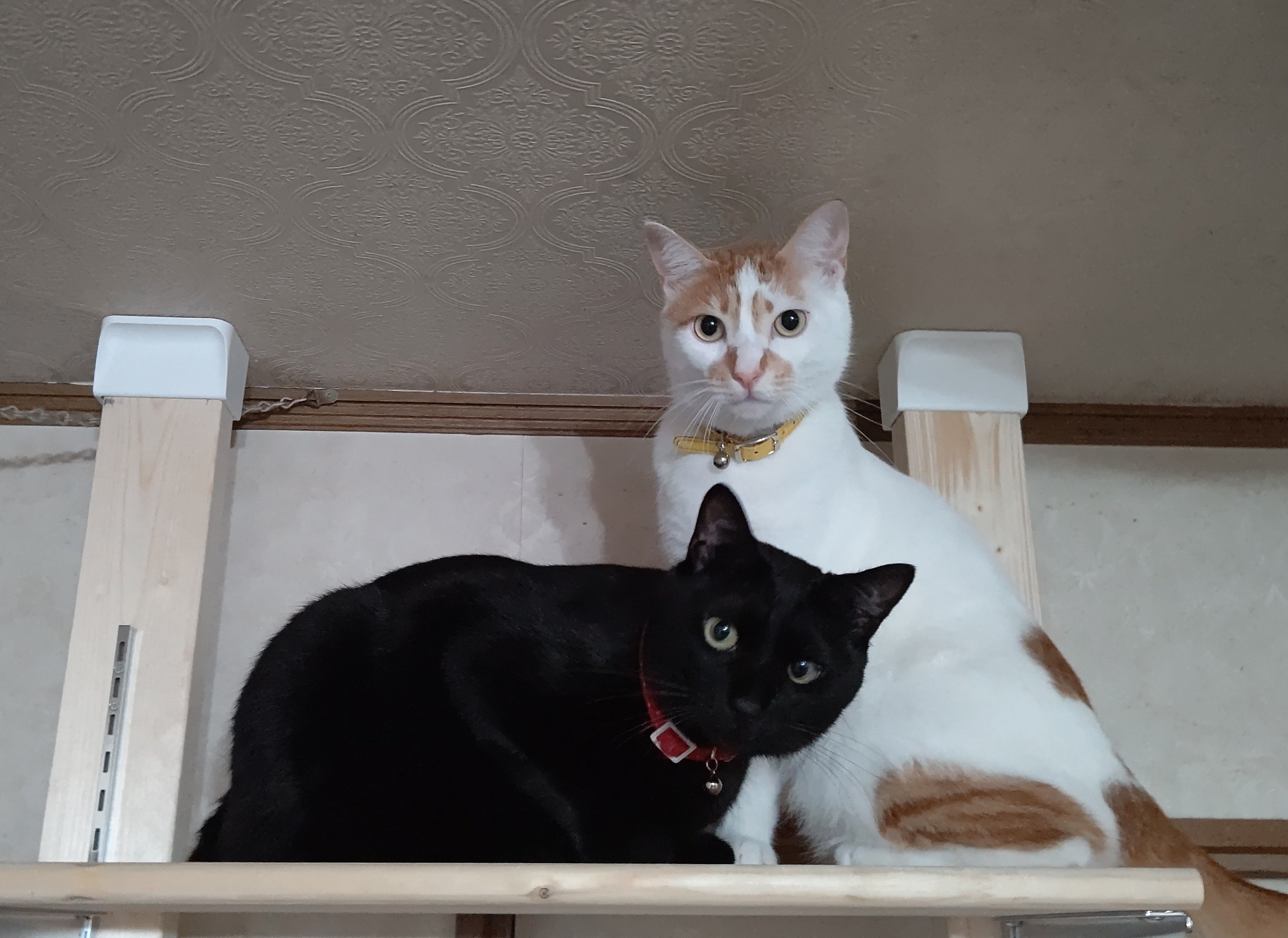 4帖の狭さの保護猫部屋にこの2匹とロッド、コージーのママの2段ゲージがありますからそりゃ狭すぎですね。