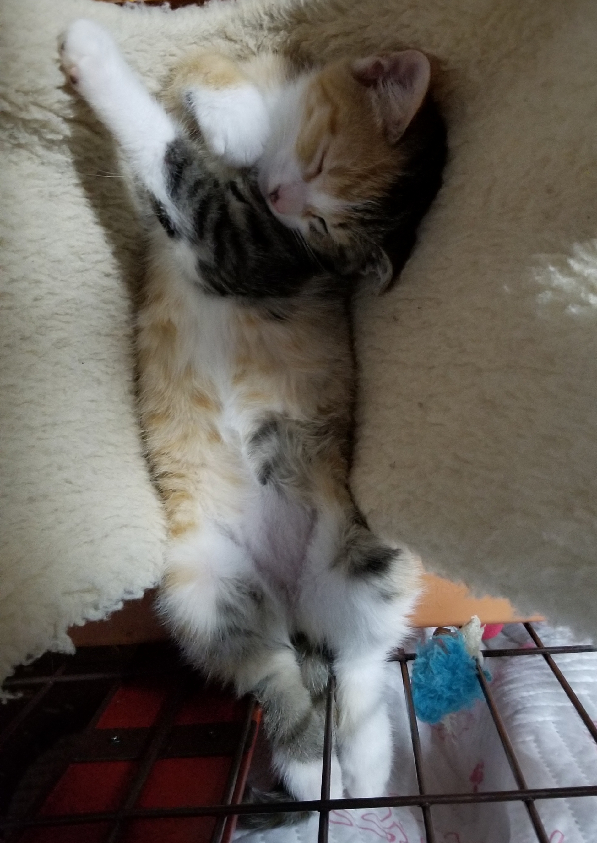 朝晩ゲージフリーを楽しんでいる美々ちゃんのゲージは小さめなのでロッドたちの使っていた3段ゲージに住み替えしました。(その空いたゲージには2階トイレ設置の小さなゲージの子猫たちを入れる予定)