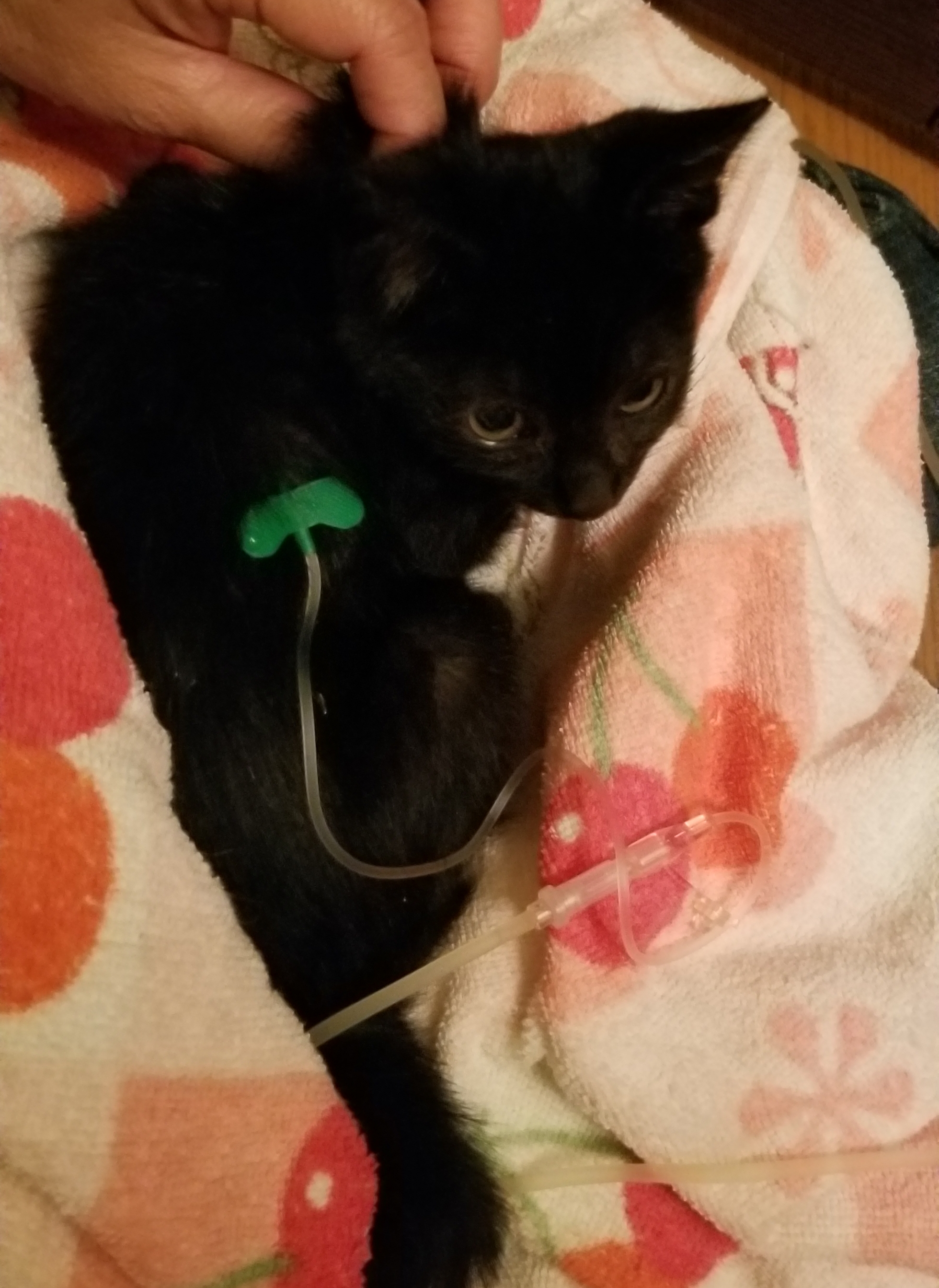 木曜日に保護した3兄妹、食べるのが早くてほかの子のを食べてしまう風邪の症状のほとんどないこの子