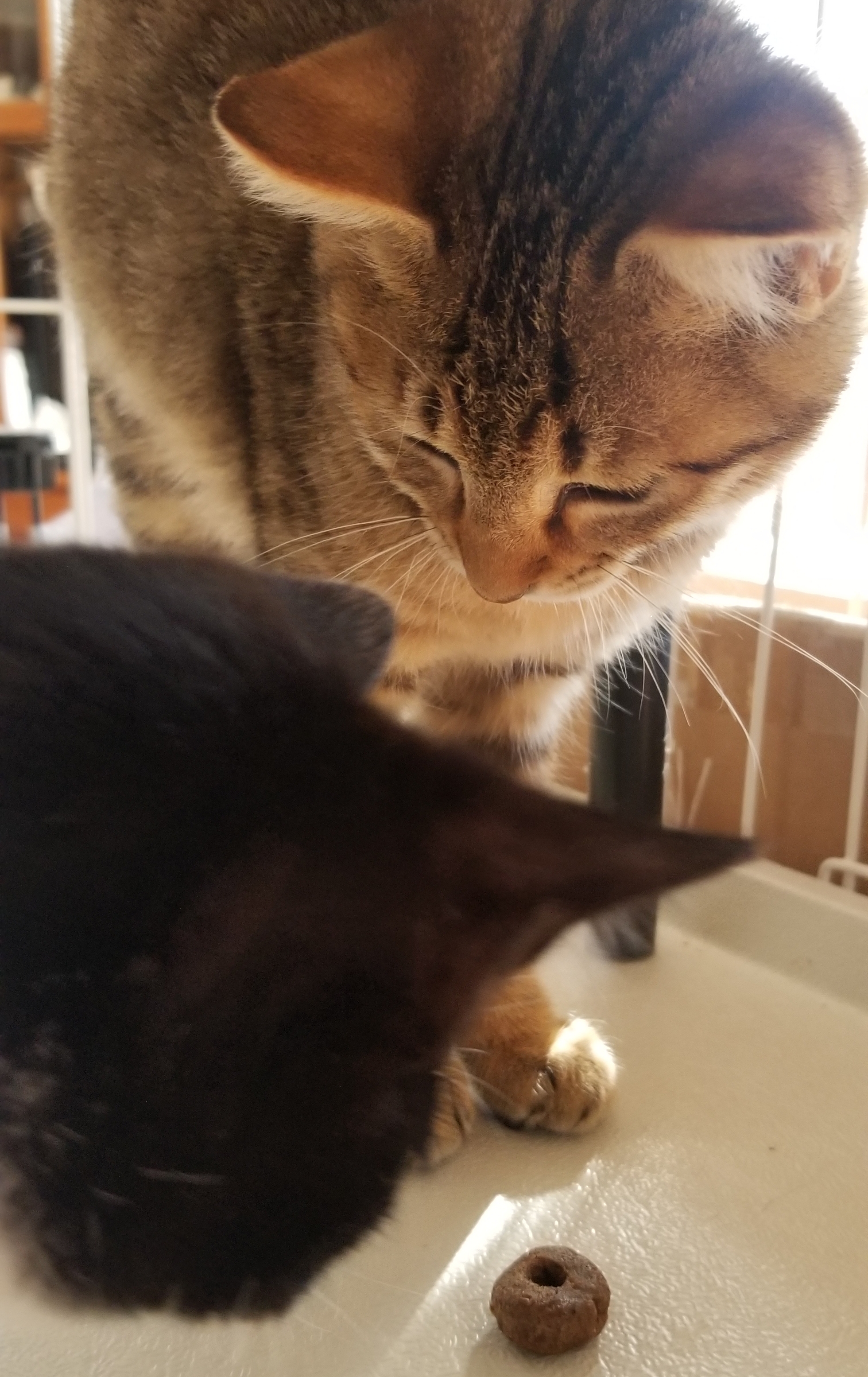 食べるのが早い子は後回しで1匹1粒あげてみました。
