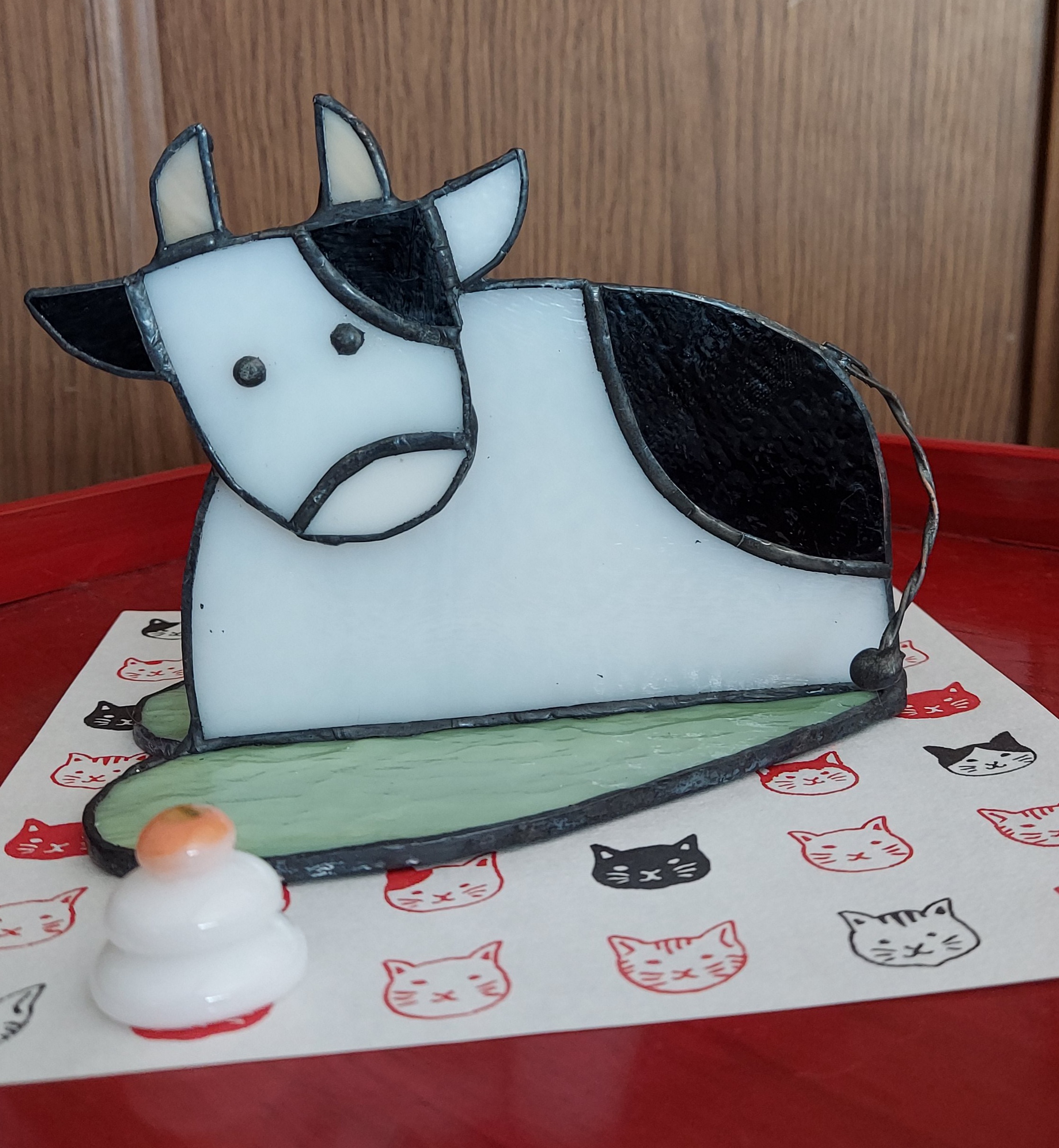 きまぐれ堂さん作成のステンドグラスの干支の牛さんです。