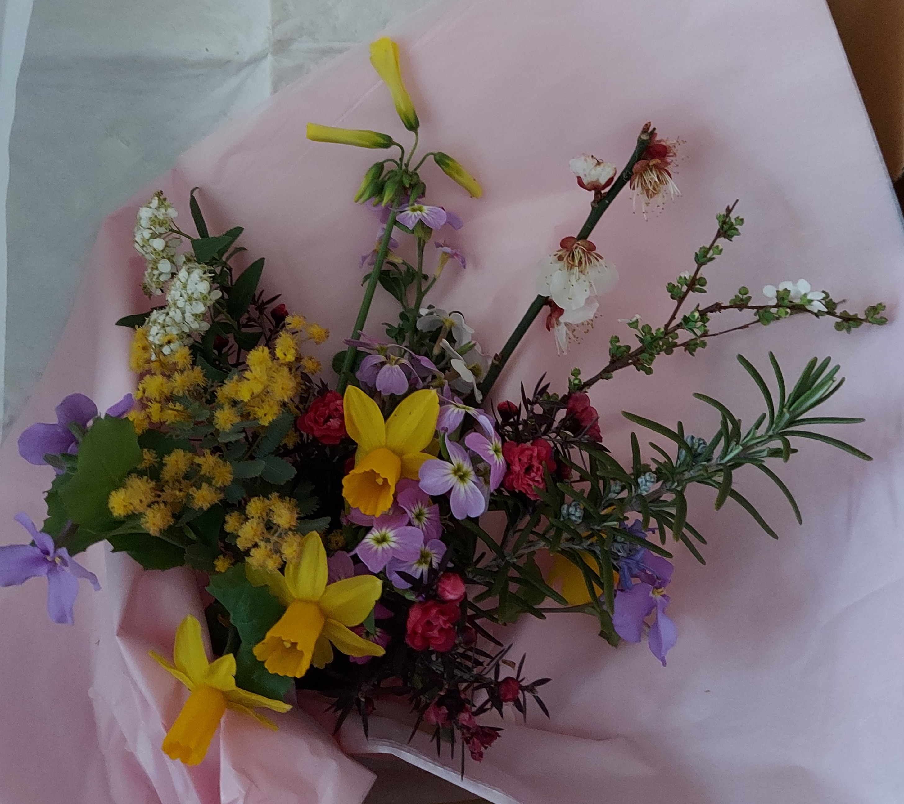 庭に咲いていた花、こでまりに雪柳、水仙にミモザ、花ダイコンに梅、オキザリス、