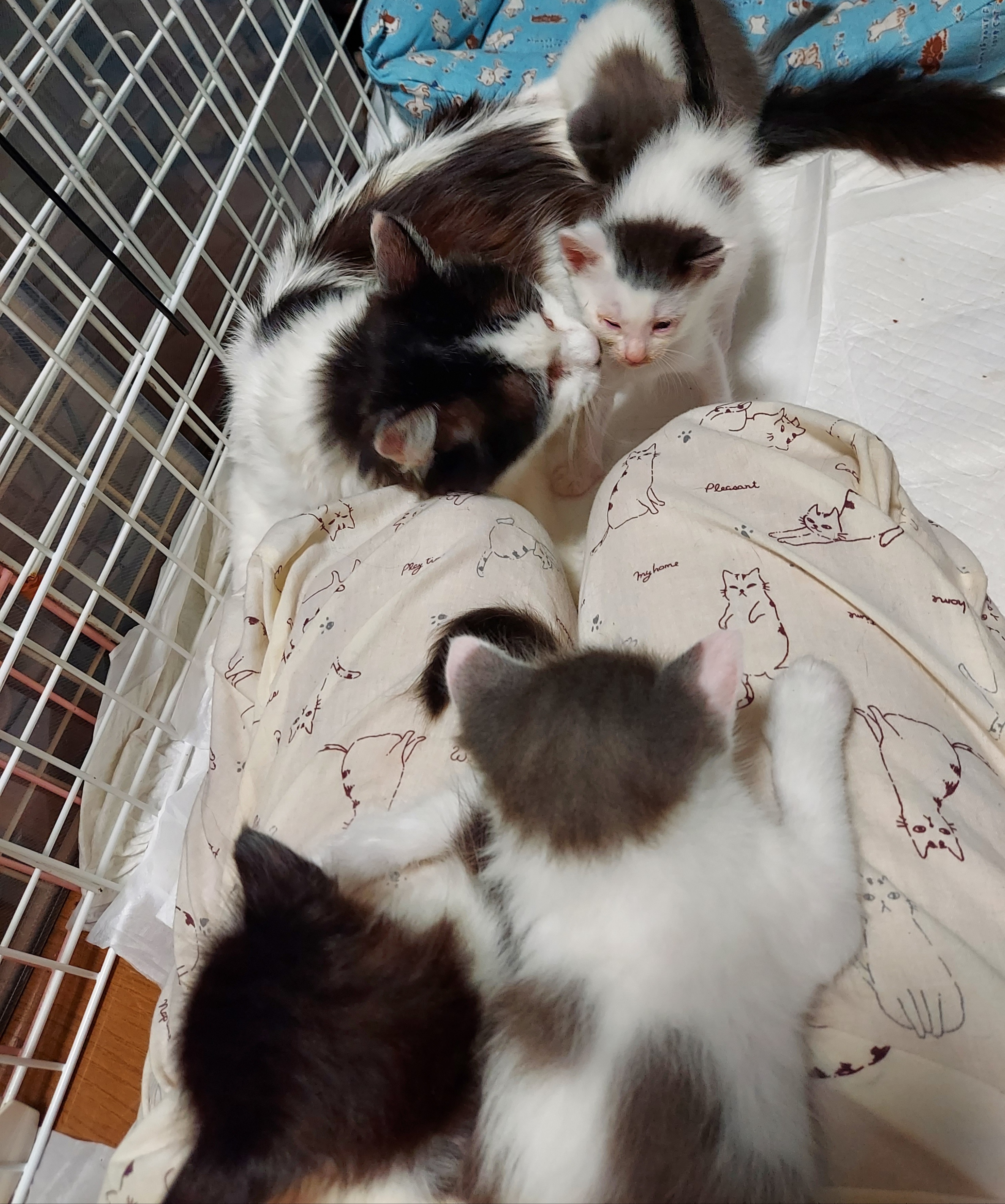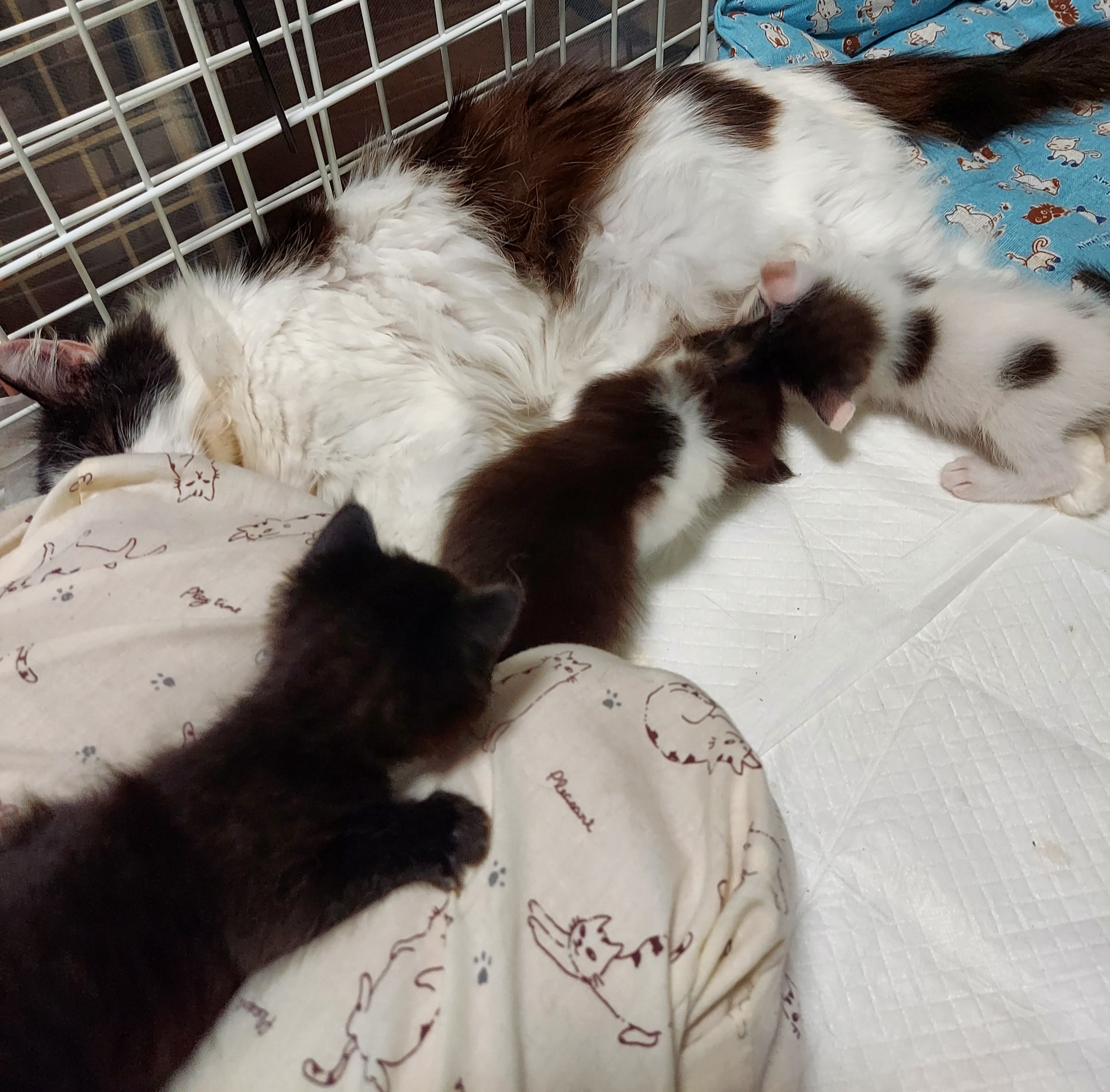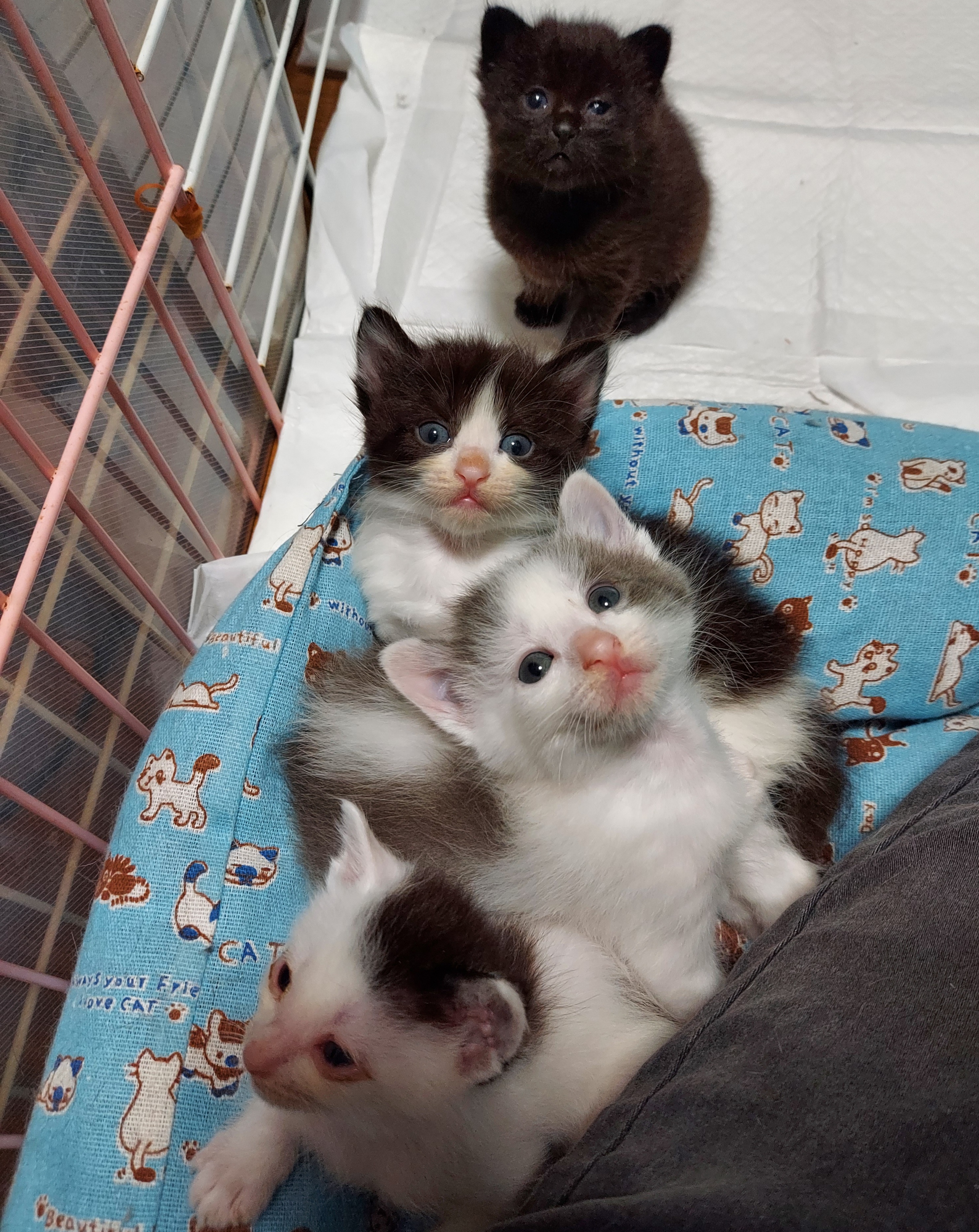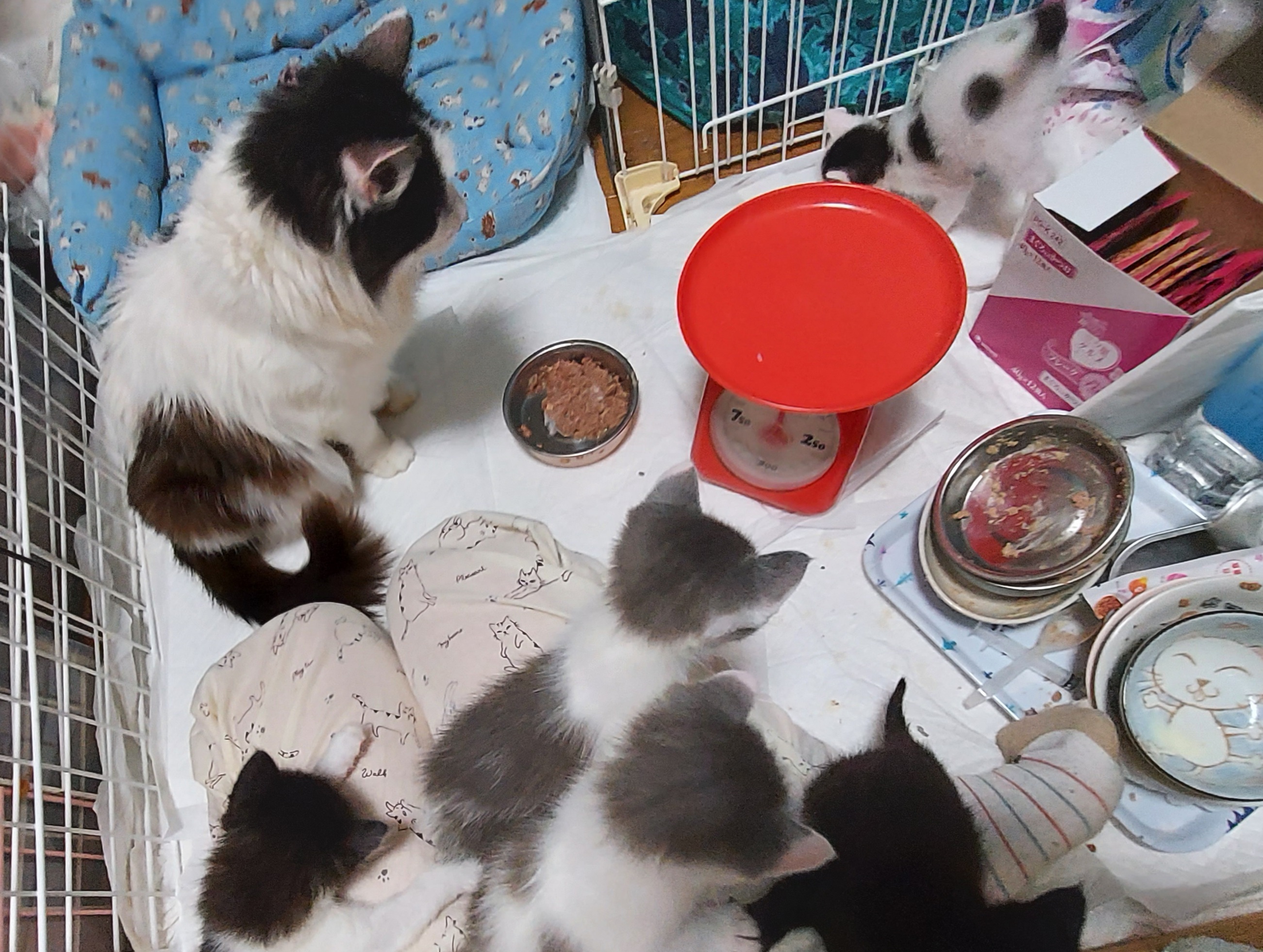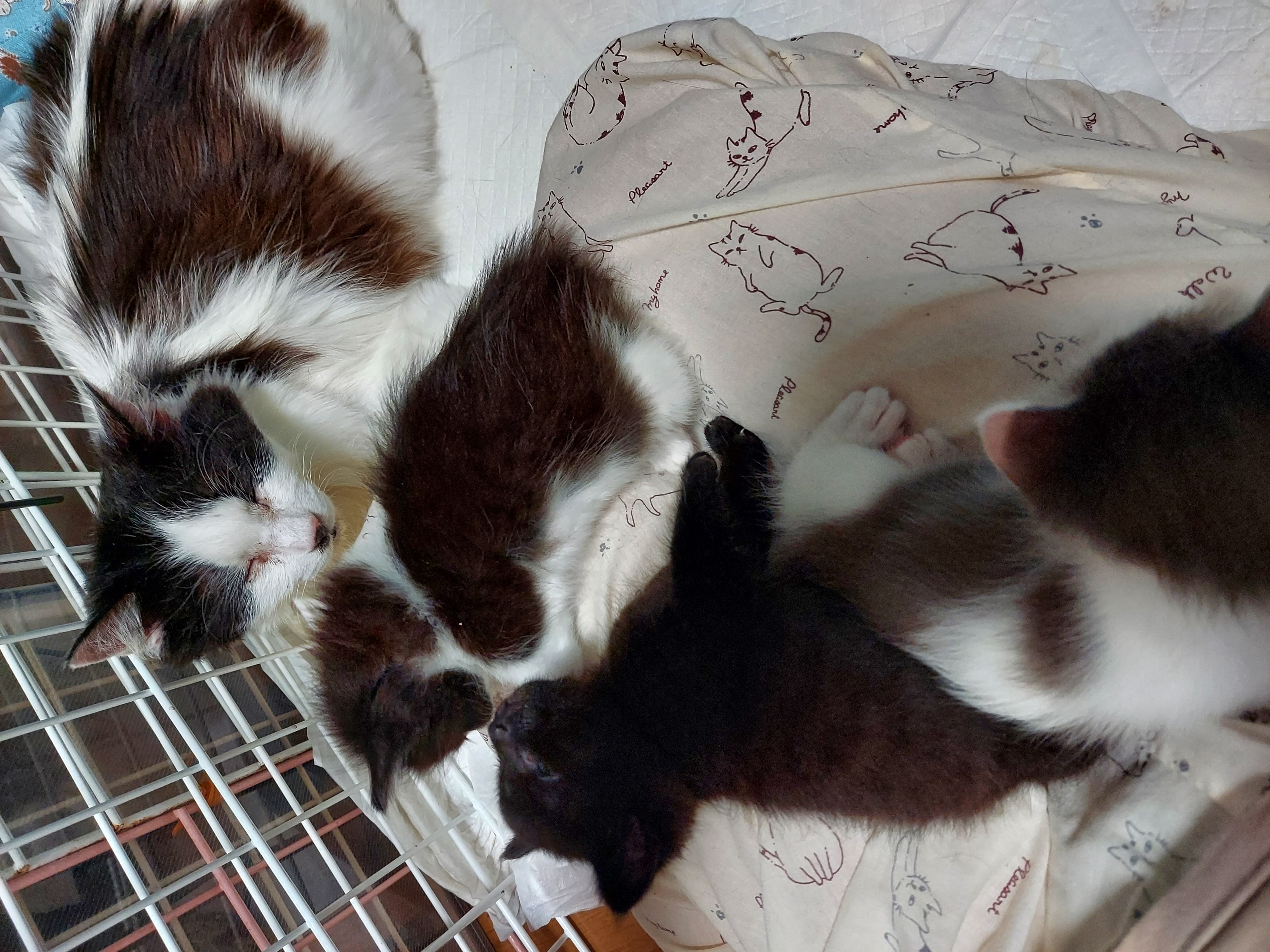 4月18日生まれの4匹と19日生まれと思われる別の場所で道端に落ちていたチビクロちゃん達。