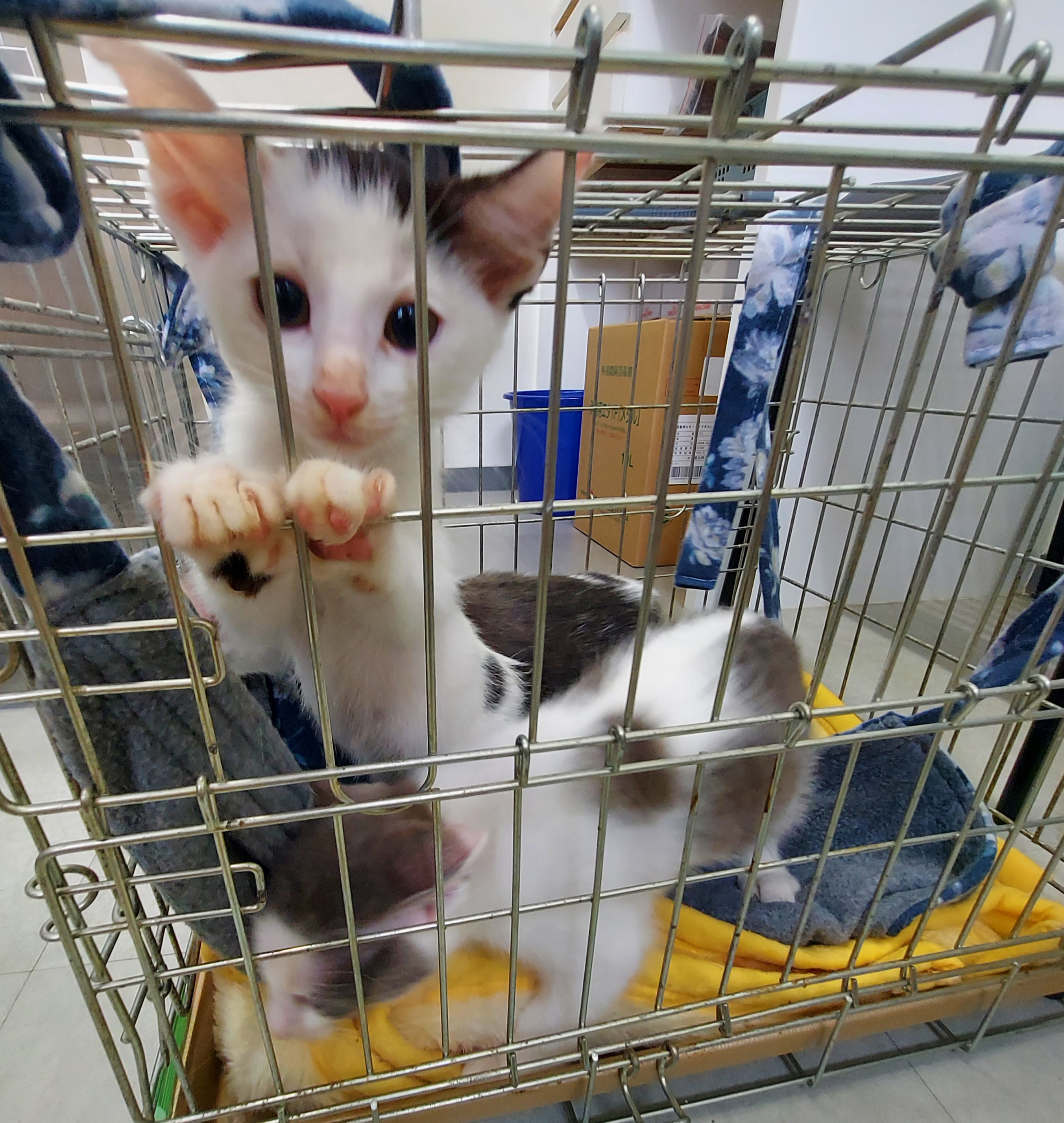 子猫たちの入っていたゲージにちゃっかり侵入しているすのおくん!