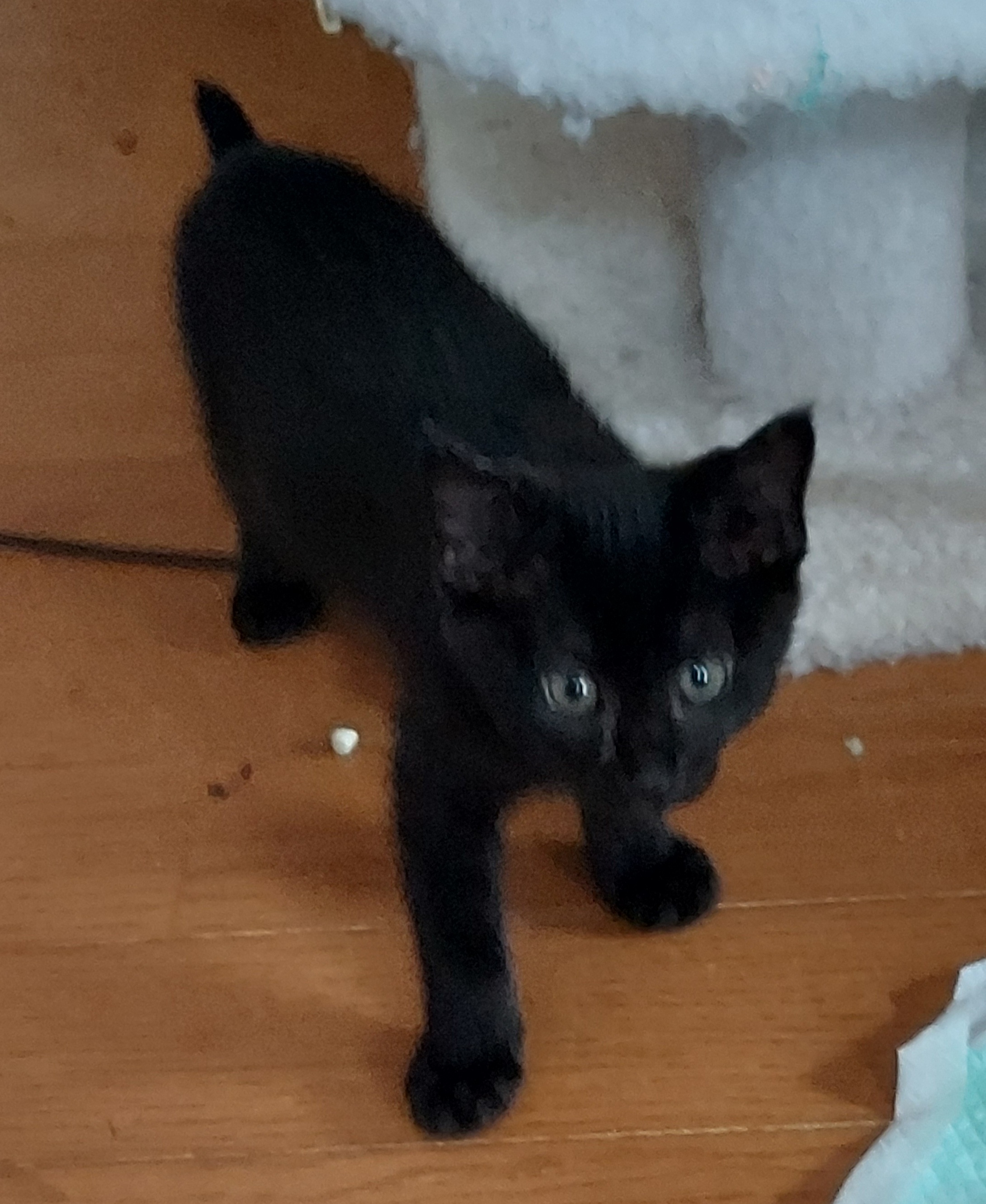 ピクミンちゃん、初めて見る年の近い猫に固まっていました。