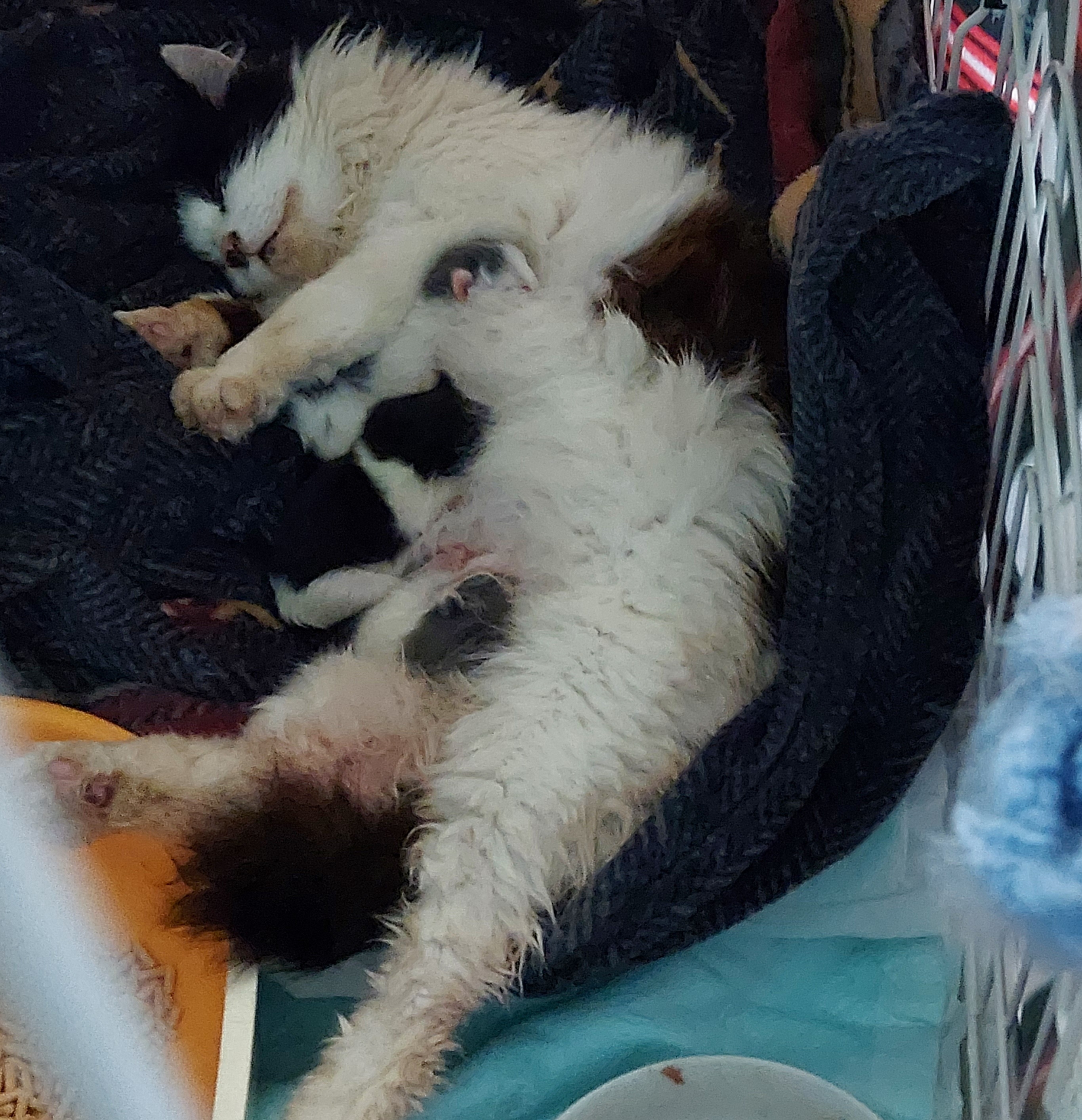 ママを抱っこすると乳房に吸い付いていた子猫たちがぶら下がったままくっついていて、それが4匹。何とも言えぬ光景。神々しい。