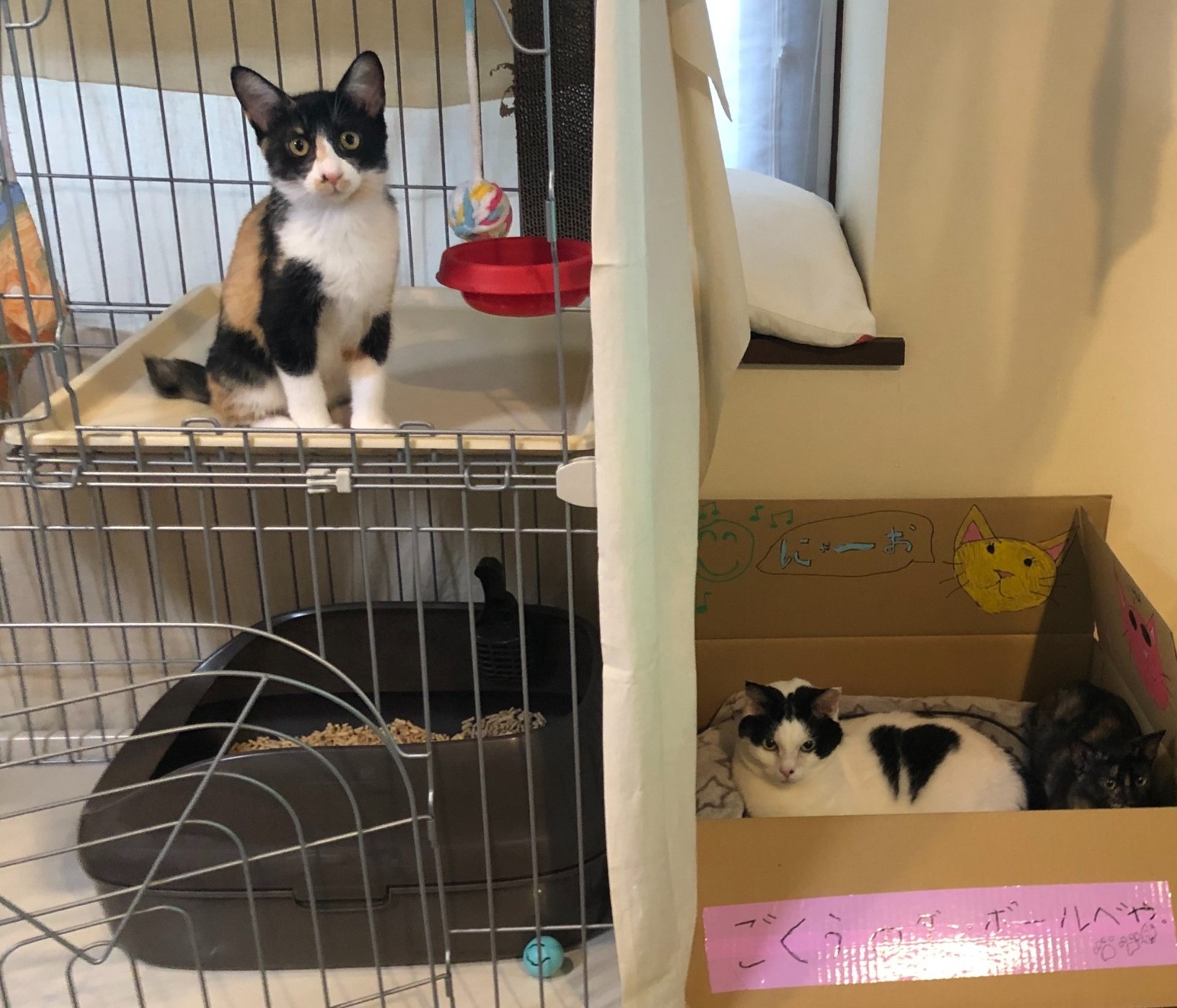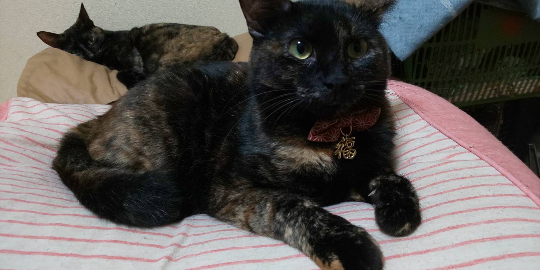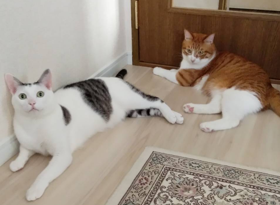 姫ちゃんに栞菜ちゃん姉妹です。先住の三毛ちゃんとも仲良くなってきたそうです!