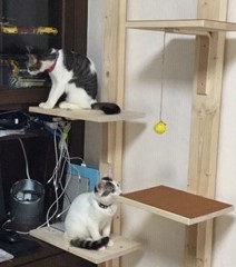 パパさんがキャットタワーを作られて二人とも早速使っていますね!
