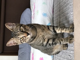 横向きで失礼します。ライナス君です。ご飯も良く食べるようになってペットボトルキャップを自分でフっ飛ばして遊んでいるそうです(笑)