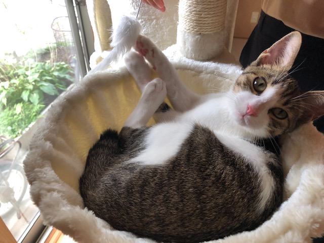みかんちゃん、遊んで~って鳴いてスリスリするんですって!!可愛いにゃあ❤