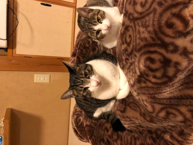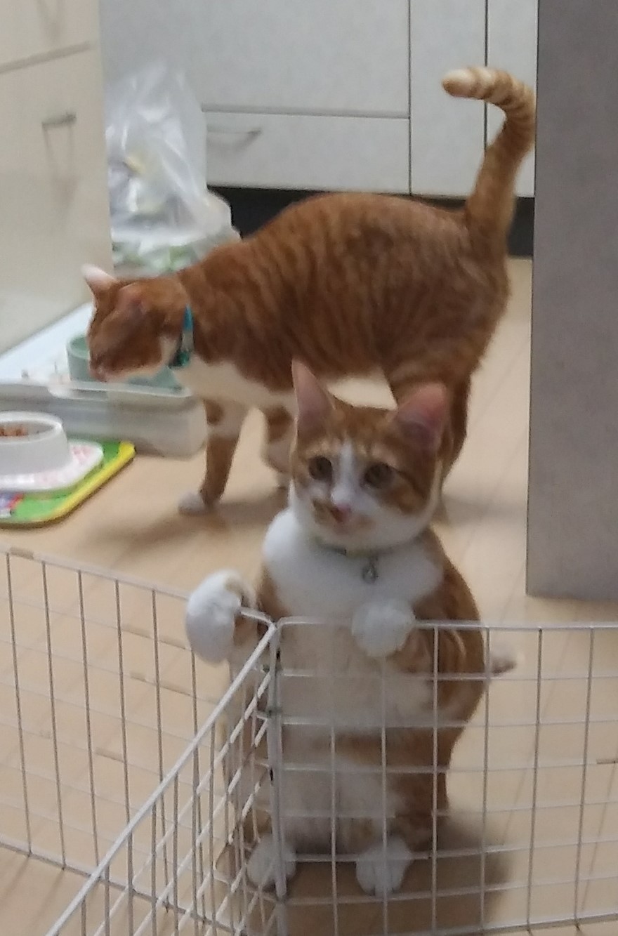 みかんちゃん、そっくりの配色の先住のおにいちゃんとピッタリ仲良しです❤