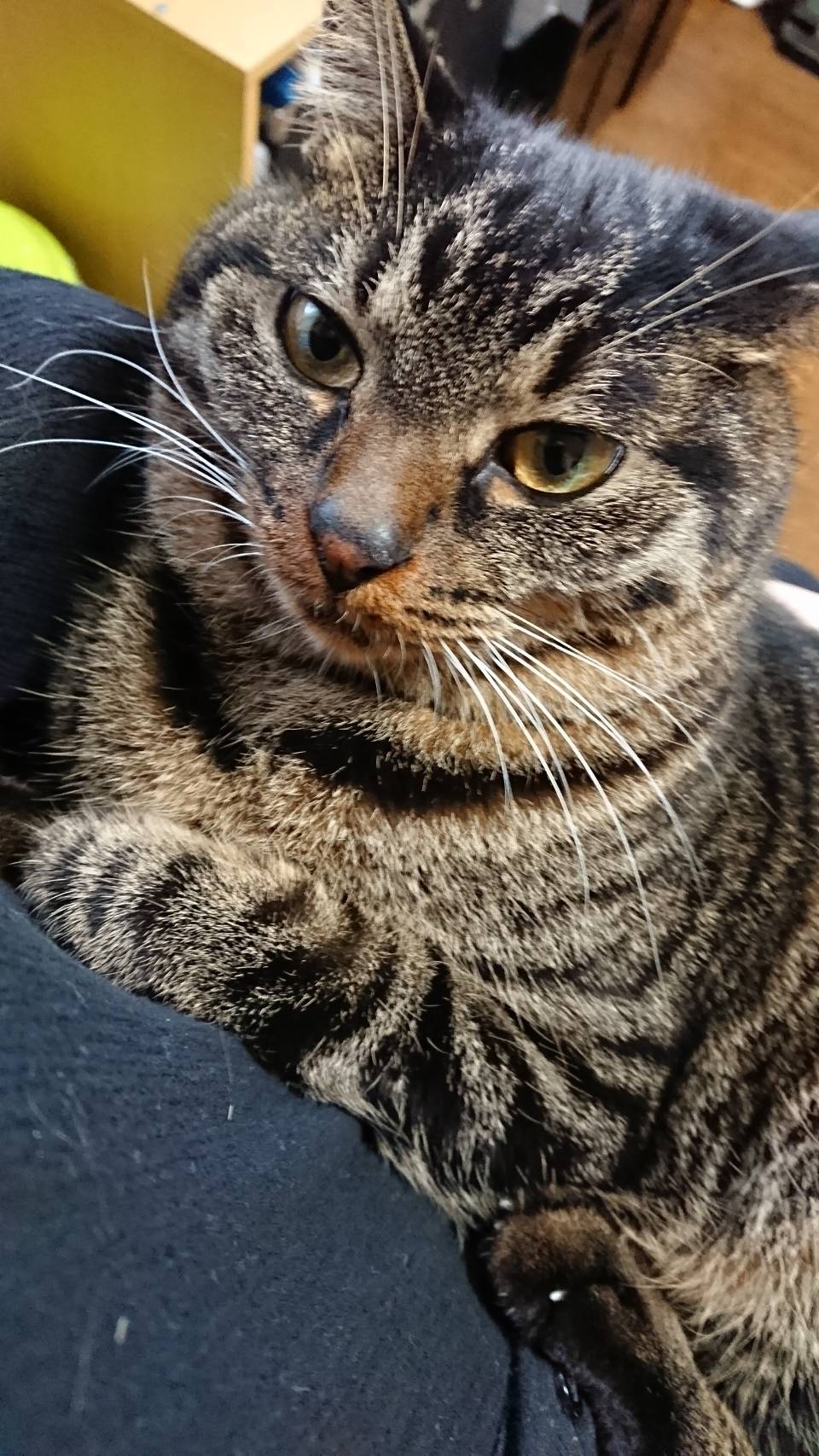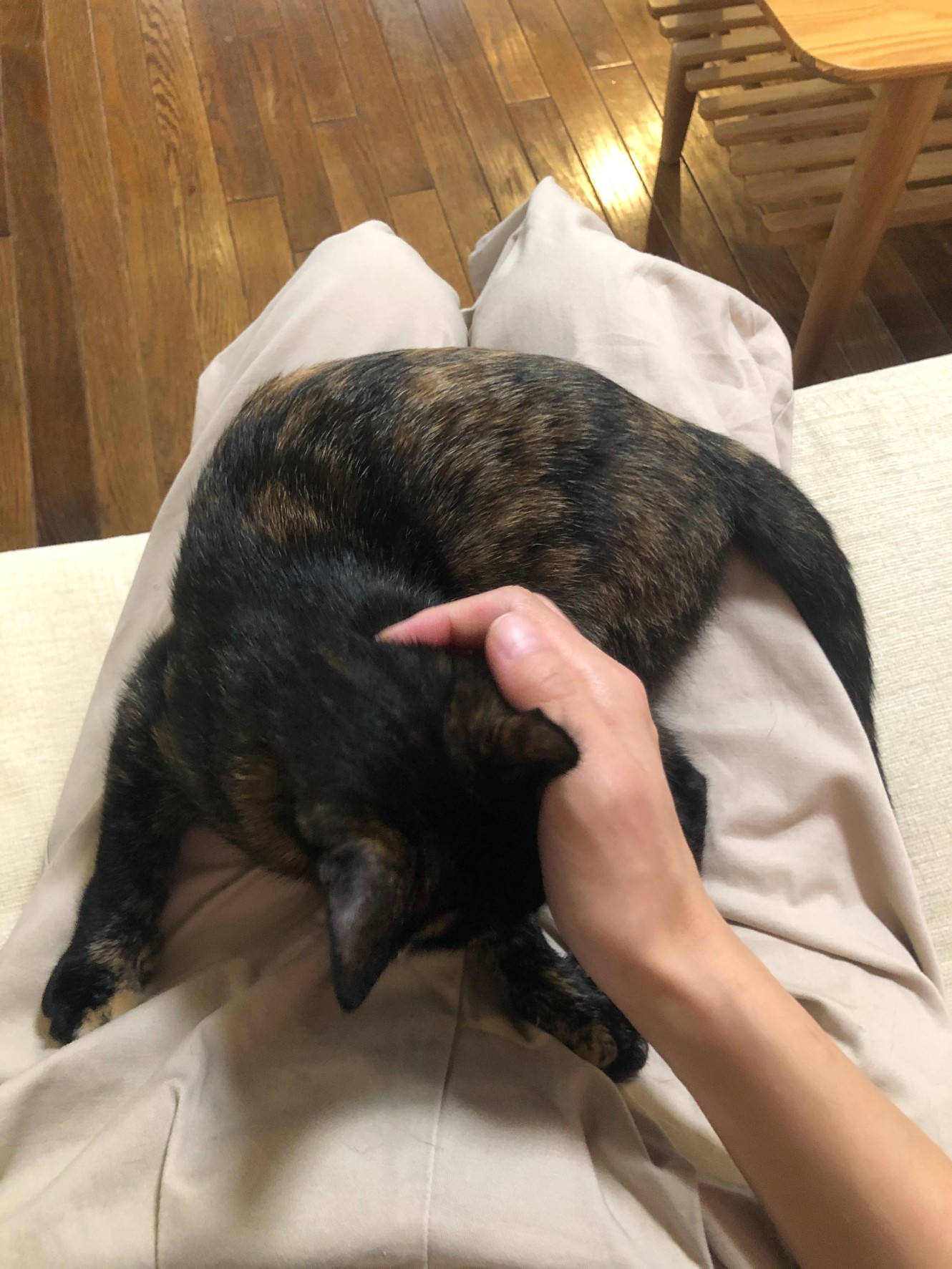 お膝で甘える梅ちゃんです。たまらないですね❤