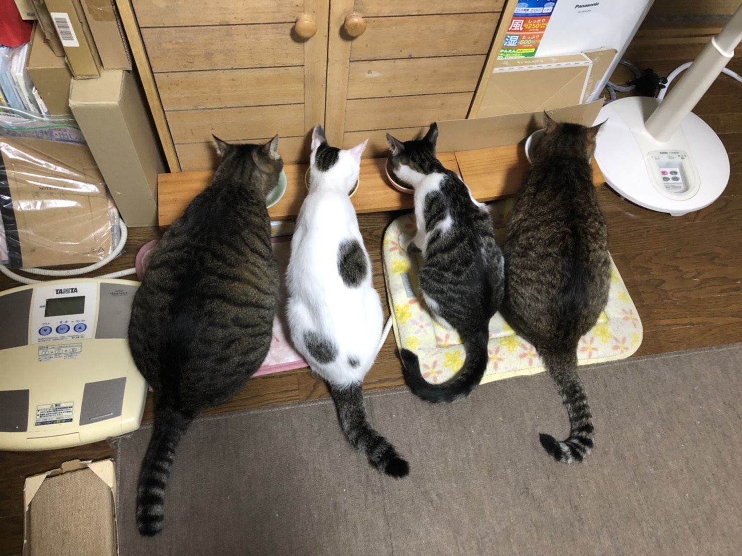 今年6月保護した4兄妹、あずまくんとこまちちゃんは先住さんたちにも受け入れてもらってこんな食事風景を披露しています。