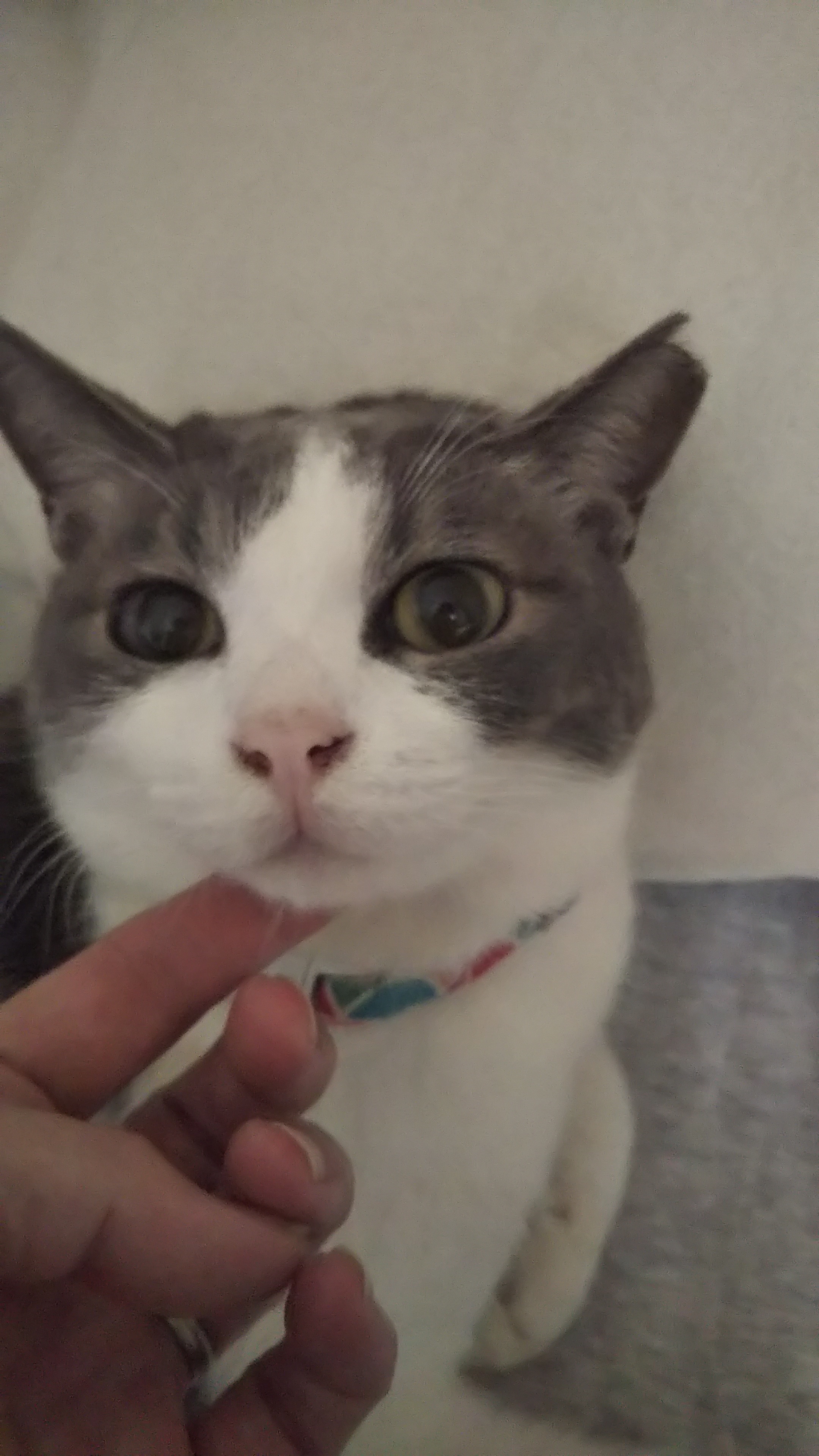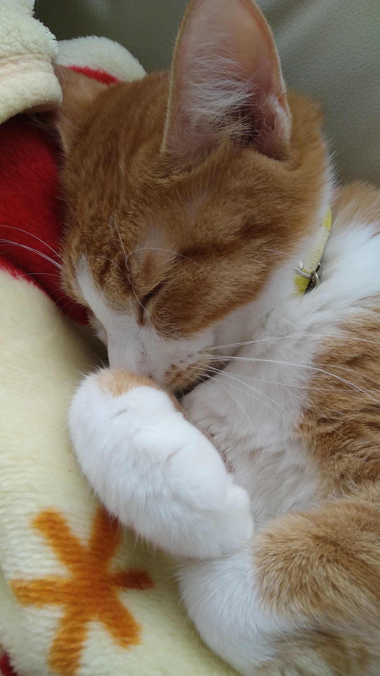 皮膚の弱いこはるちゃんはカラーの手前にクッション性のあるものを付けています。