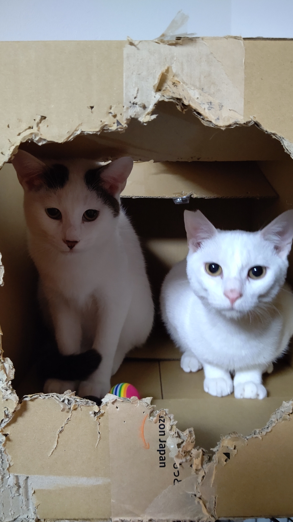 あずきちゃんに先住のゆんぼくん、あらあら❤暖かそうですね!