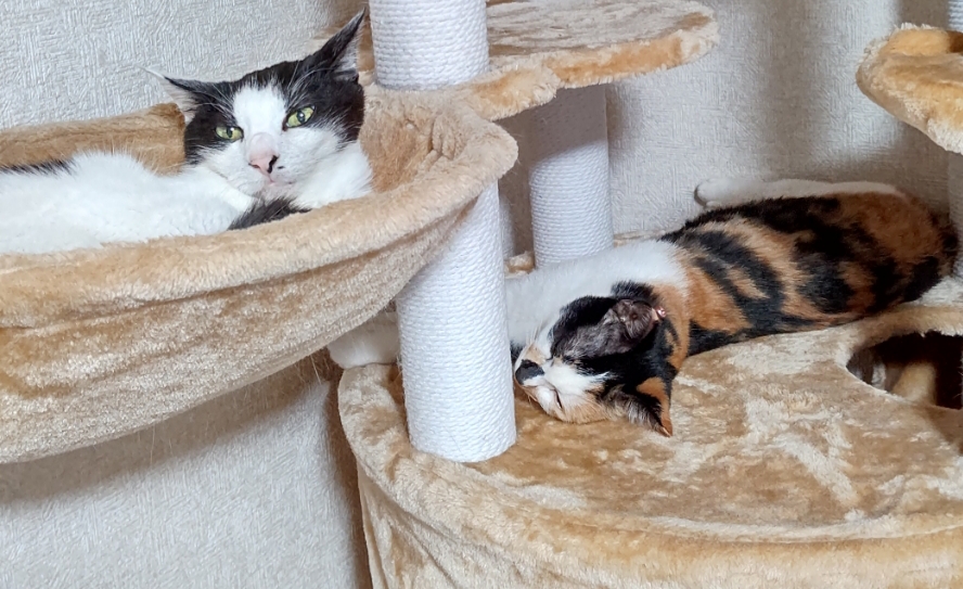 ぶんたくん、うめちゃん、ちょびたくん、こてつくん、みんにゃ居心地のいいおうちで幸せいっぱい!! いいね~~!!