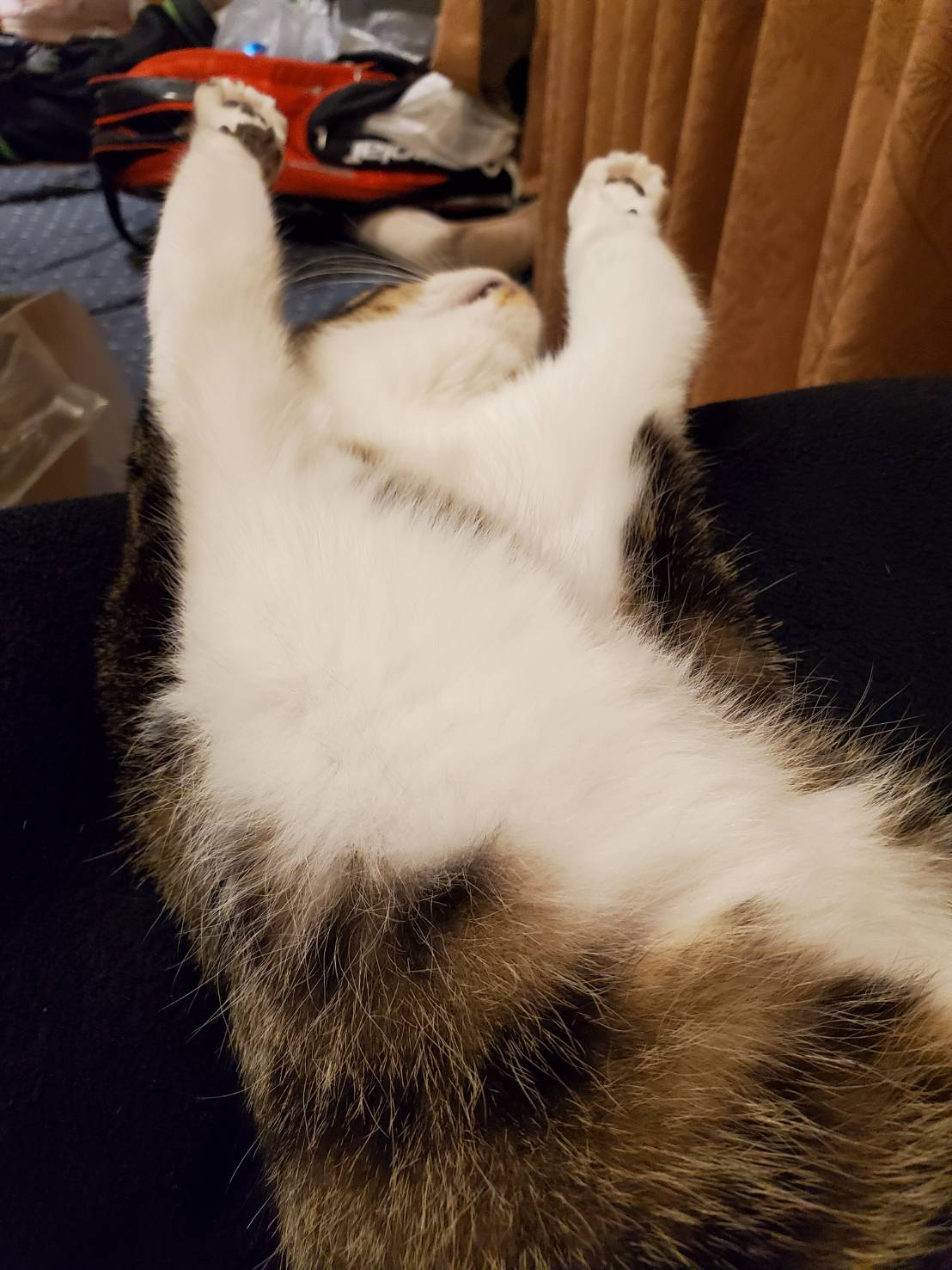空くん、お膝の上でバンザイ寝(笑)