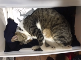 ぴのくん、お兄ちゃんのお部屋のタンスの引き出しでおねんねです。