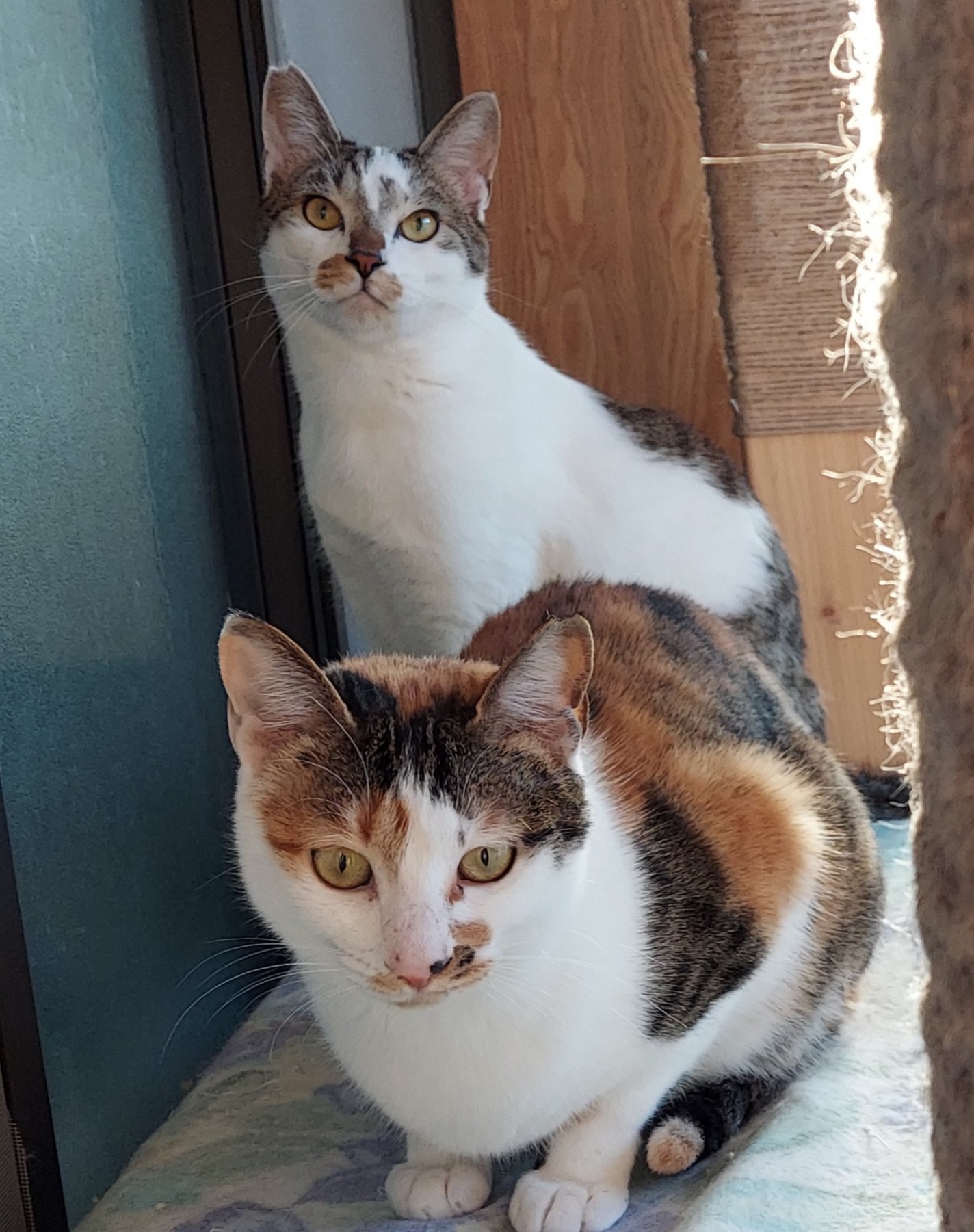 ほたるちゃんにこはるちゃん、三毛姉妹です。