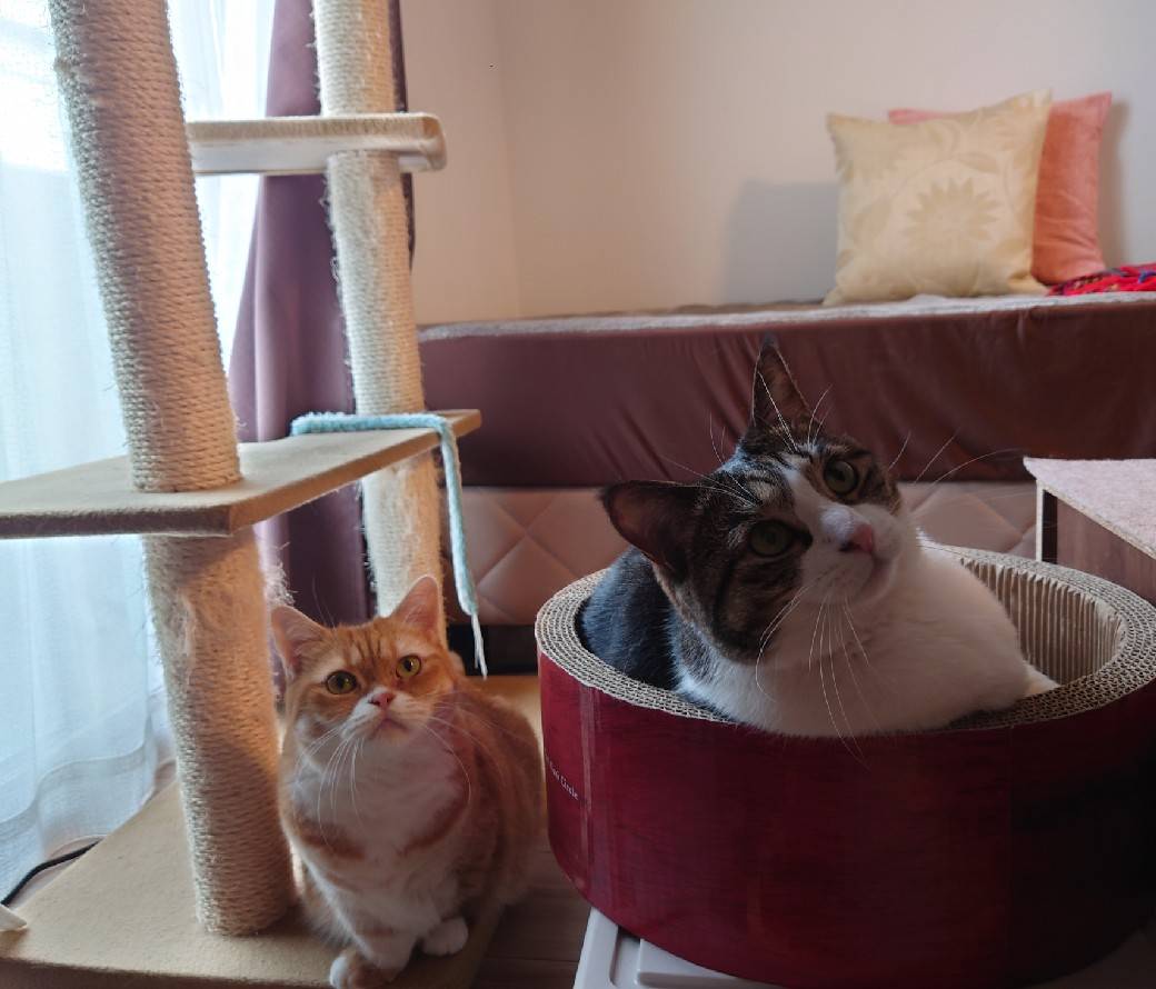 大病を克服した茶々ちゃん(右)にひとり暮らしの高齢飼い主入院で行き先が無くなってしまったプリンちゃん。