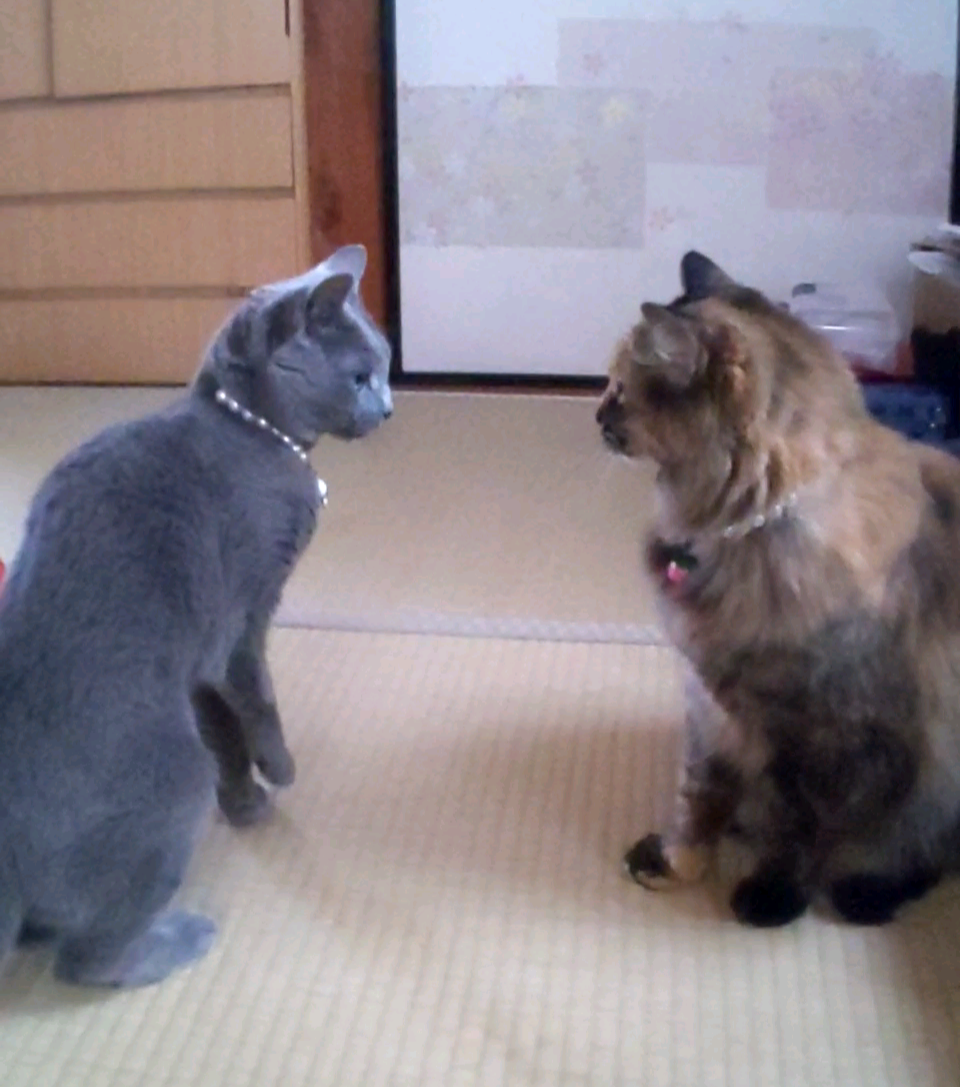 先住さんたちに見守られながら頑張っています。