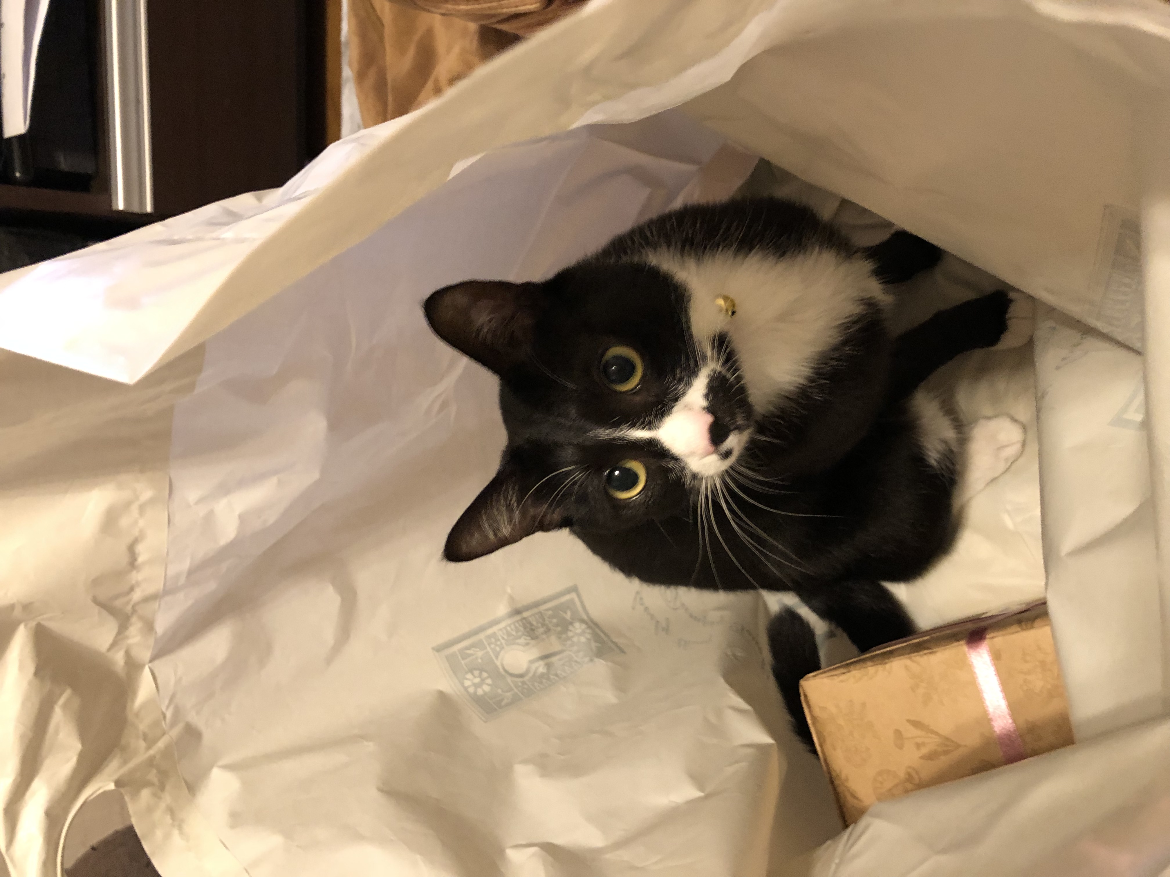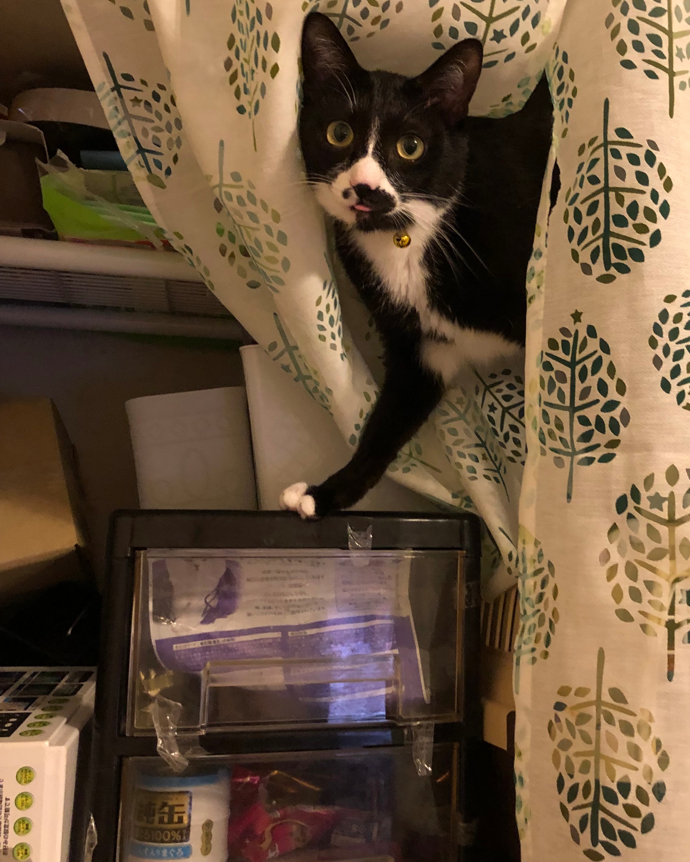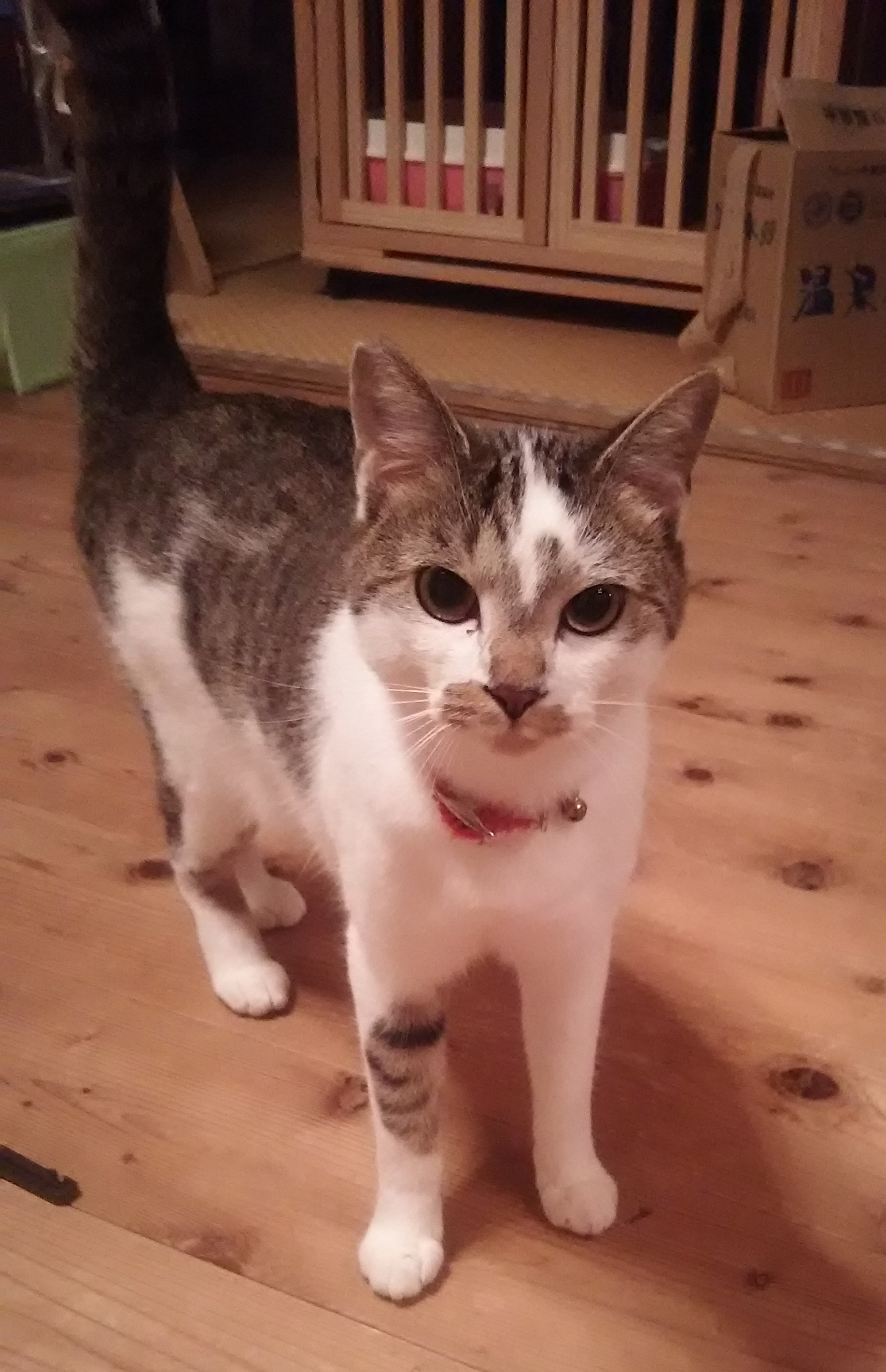 夜の室内探検を楽しむかなた君。