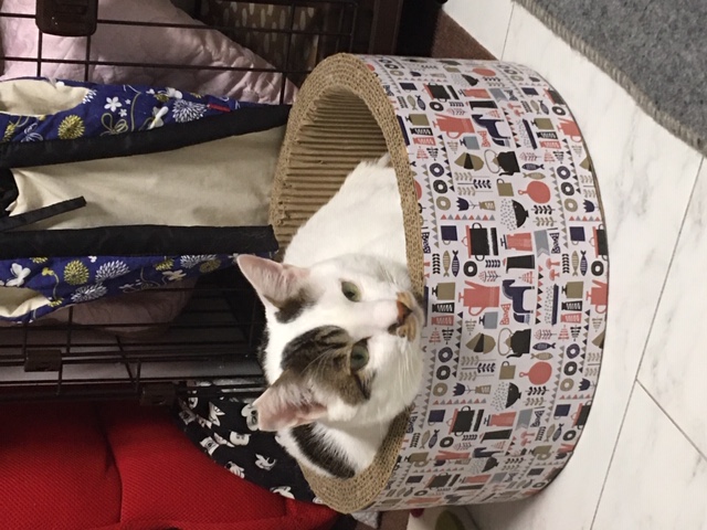 ずっと鳴いていたものの、帰宅後のおやつでご機嫌は直ったようです(笑)