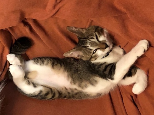 こんな笑っちゃうくらいの大胆な格好で寝ている空くん(ハク)は正式譲渡が決まったばかりです! 先住のりゅうくんとも月齢が近いので双子みたいな感じでしょうか(笑)