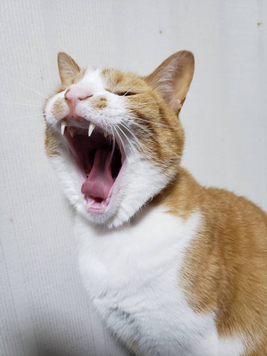 むぎちゃん、リラックスしておおあくび❤ 可愛いにゃん!!