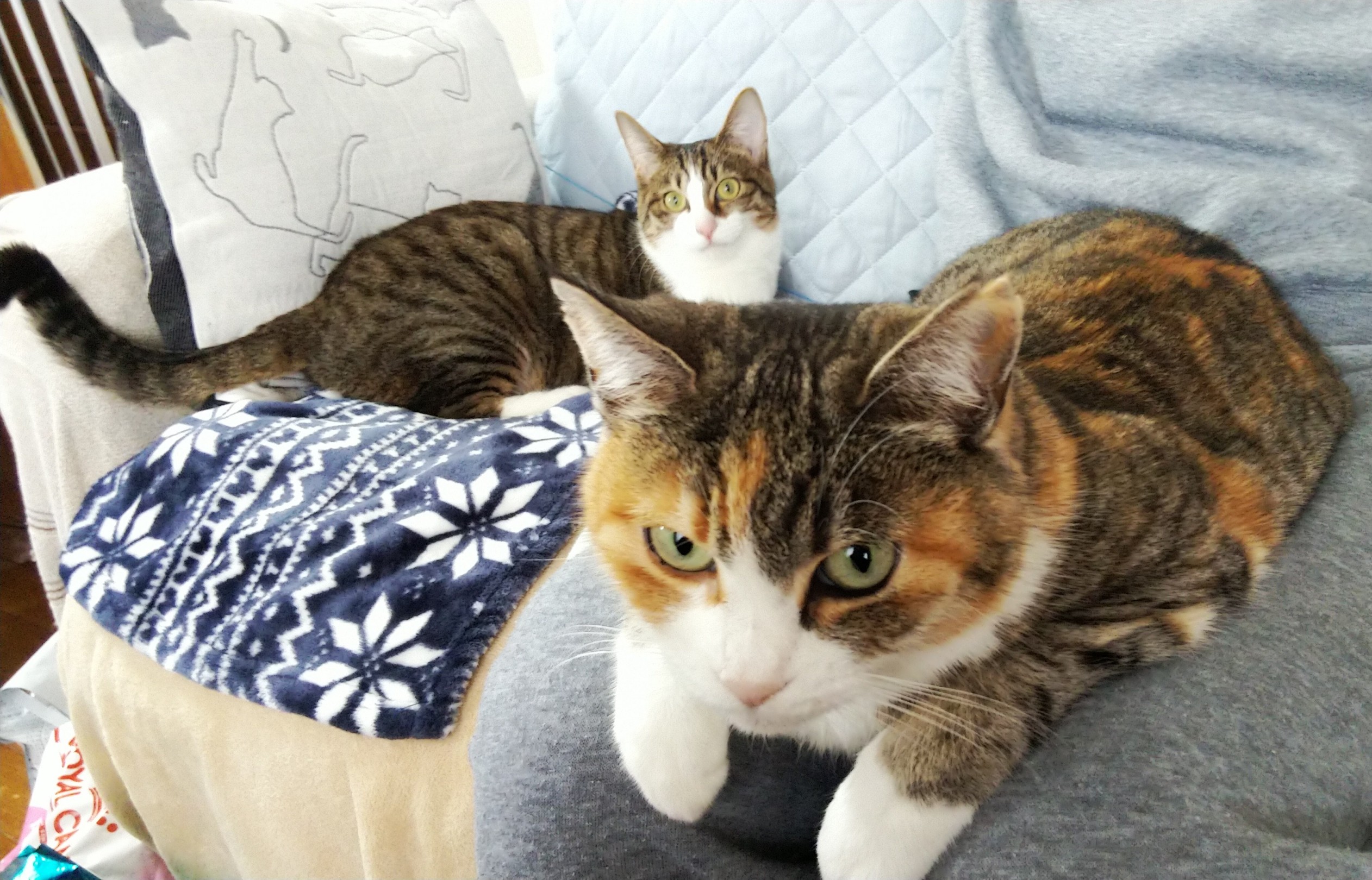 ほたるちゃんにこはるちゃん、三毛姉妹です。
