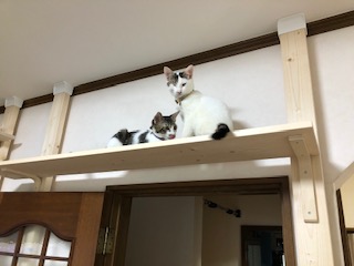 パパさんがキャットタワーを作られて二人とも早速使っていますね!
