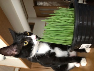モチくん、お目目がきれいだね~!猫草もりっぱに育っていますね!