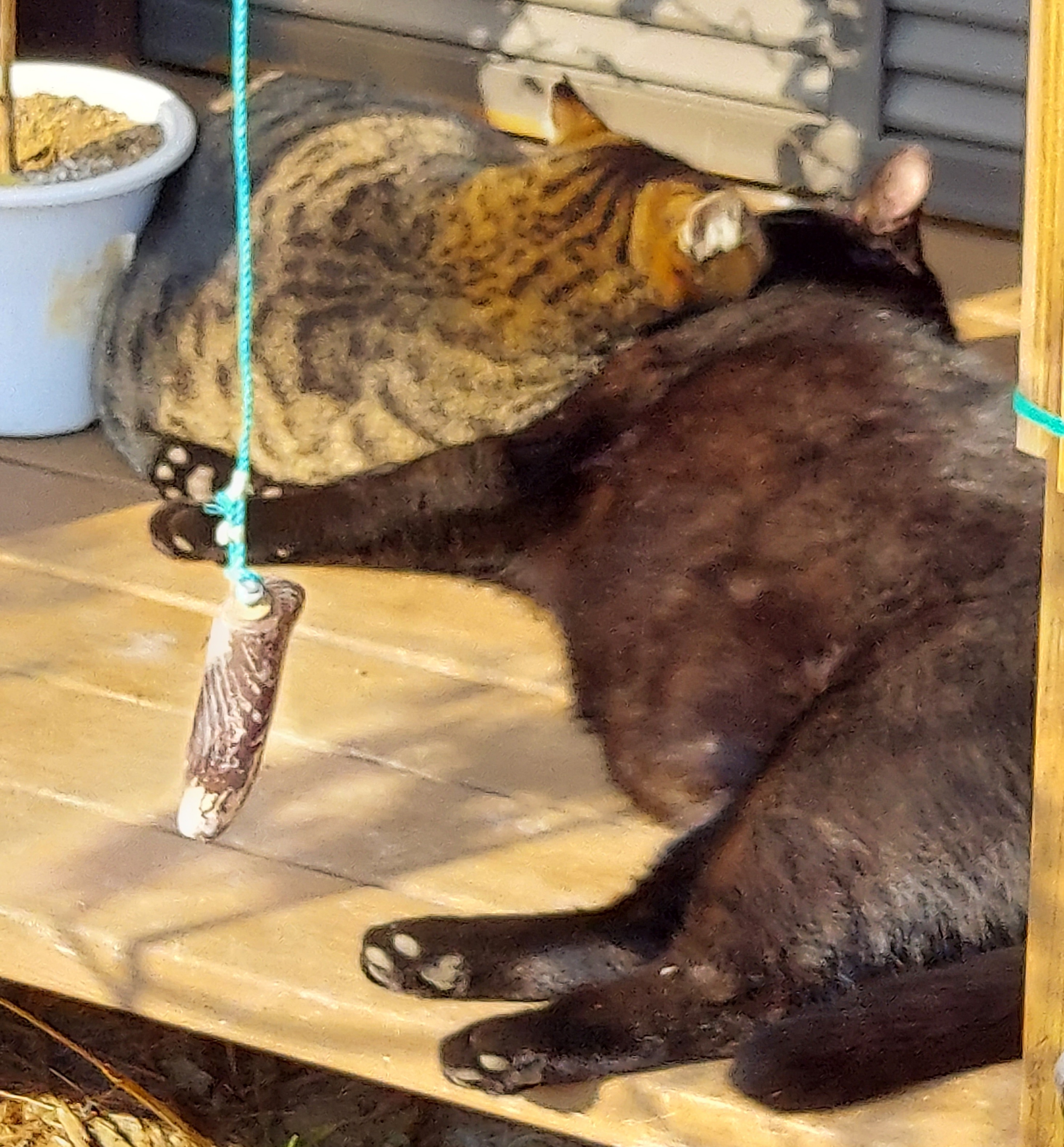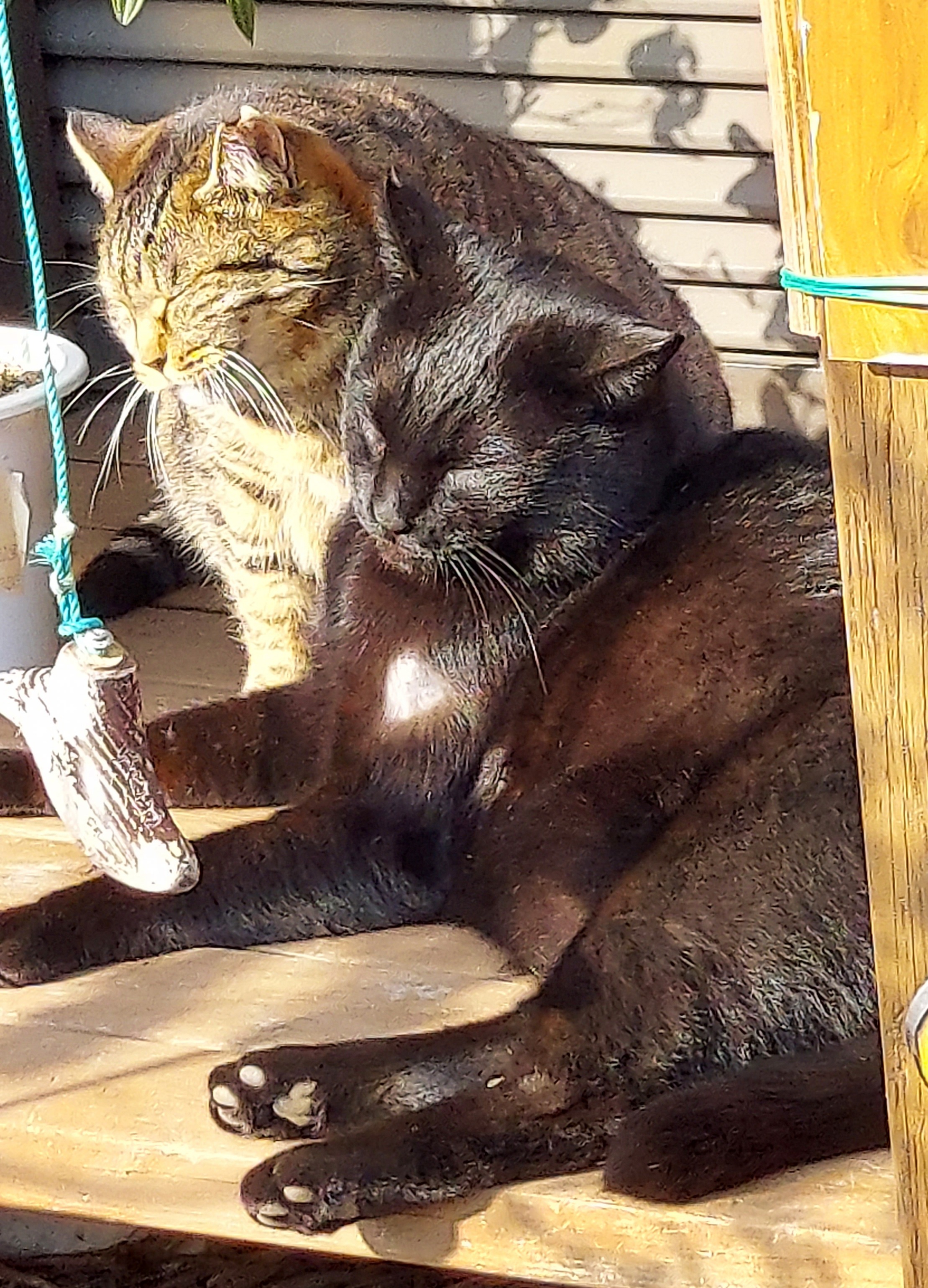 ちゃごはビビりで人にはまったくなつきませんが、先輩のマルタが大好きで「兄貴~!」って感じでそばにいることが多いです。