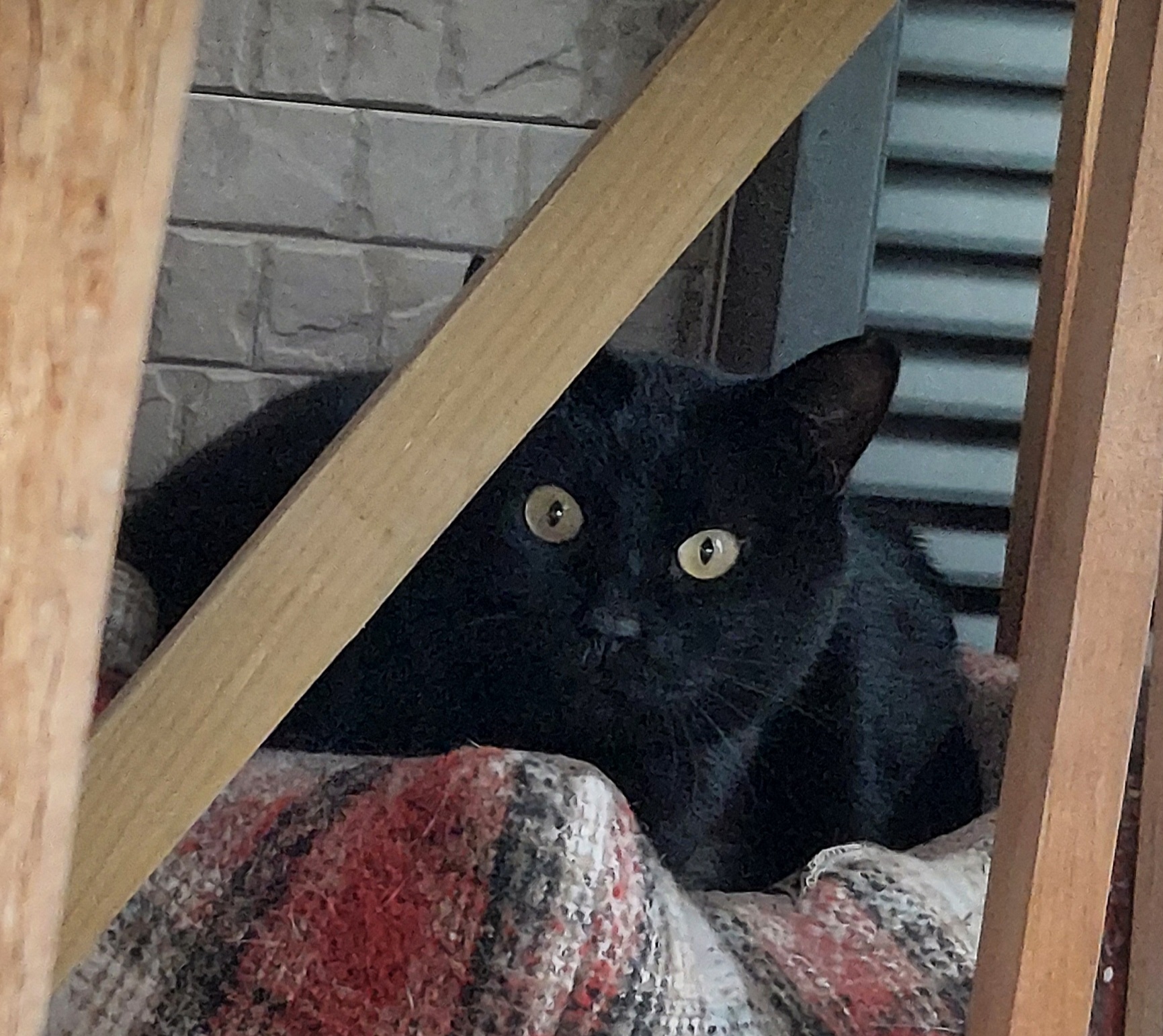 ちゃごたちがいつもいるウッドデッキのビニール囲いの中にいました。