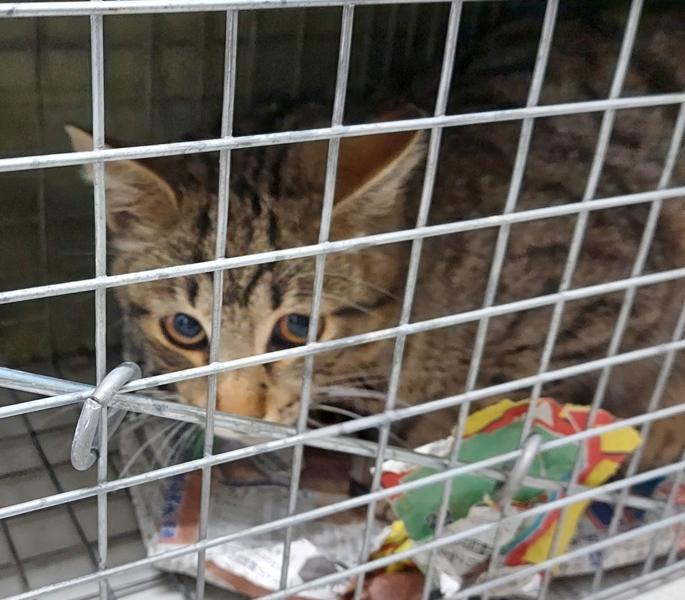 本日の子猫の保護ですが8時半スタートで、一番控えめで最後になるかと思っていた三毛ちゃんが最初に保護できました。