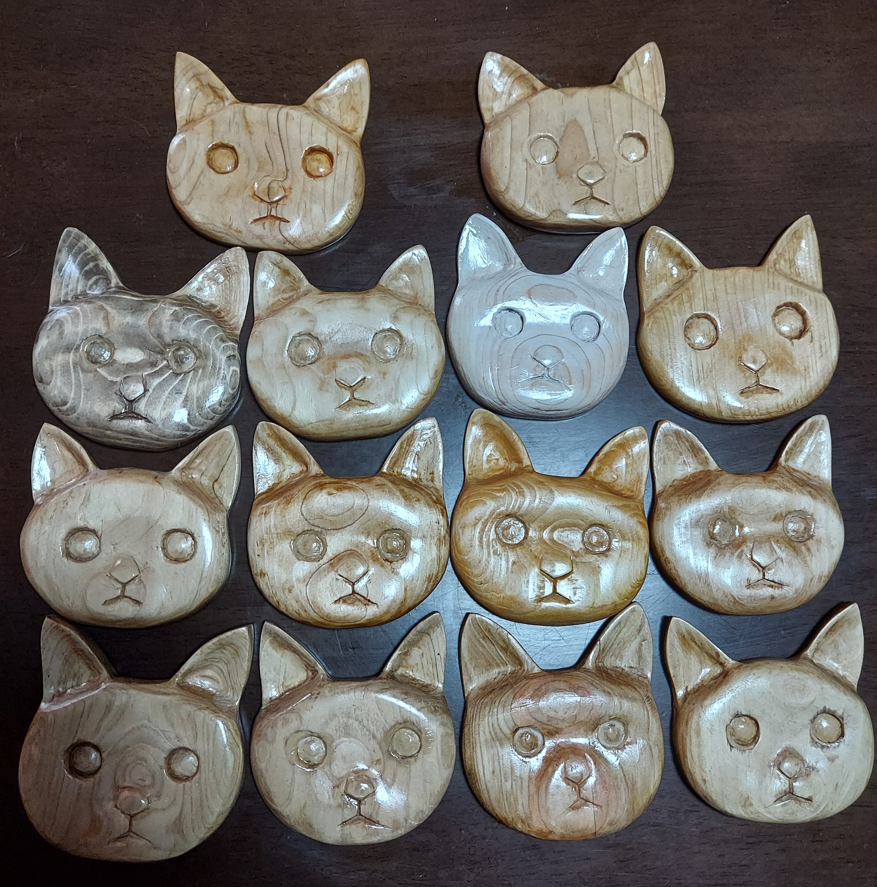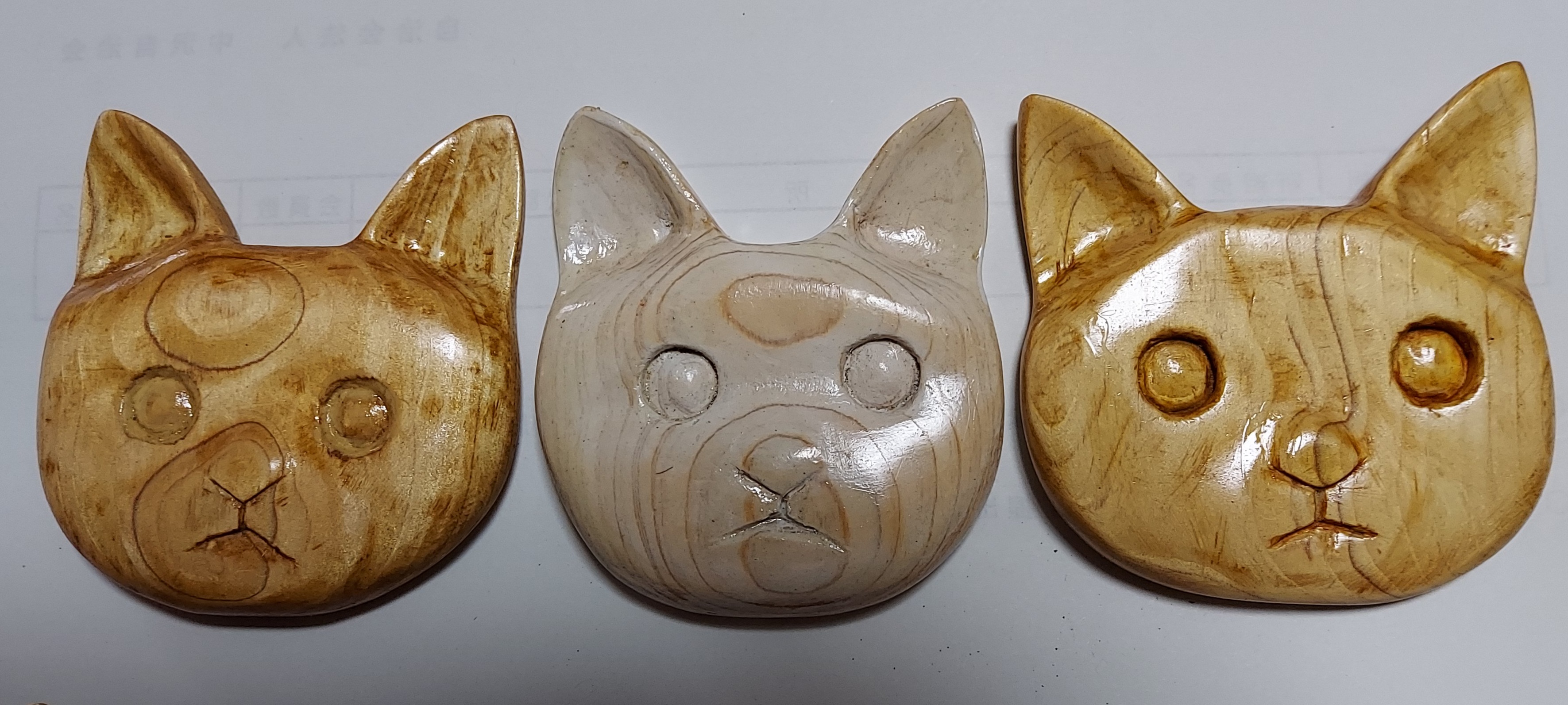 無垢の木を彫刻して猫の顔を作りました。