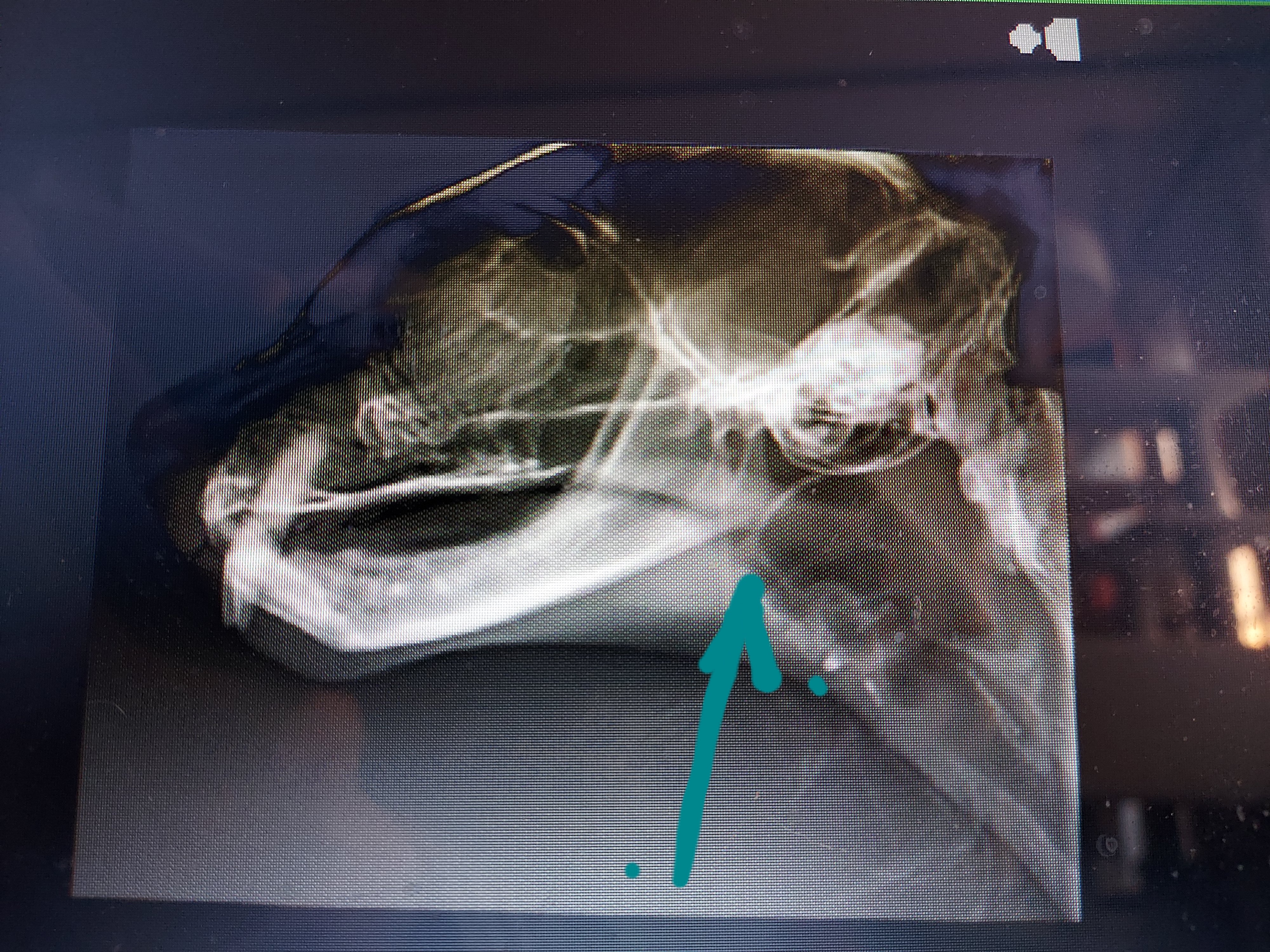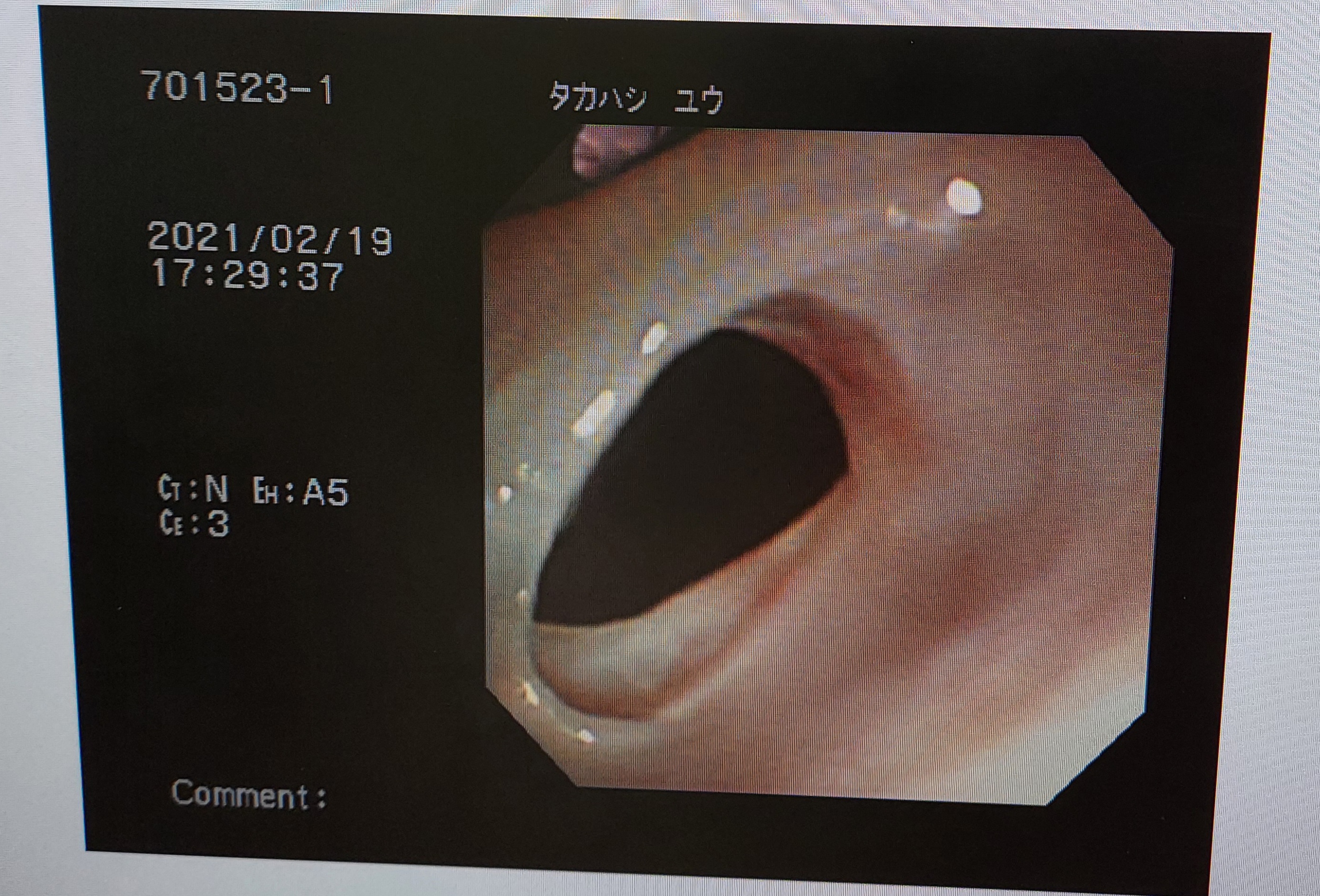 レントゲン写真からこの白い線変だよね?ってことで内視鏡をして